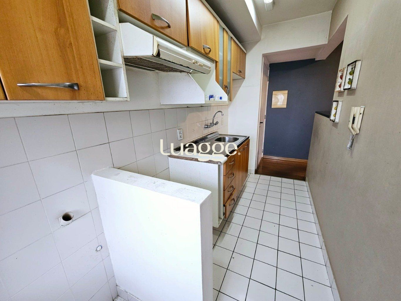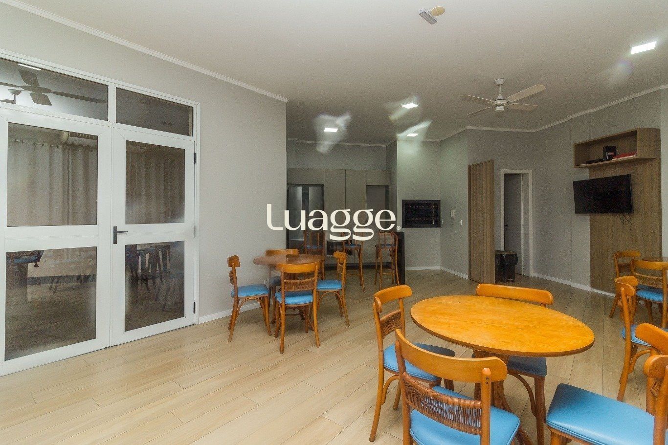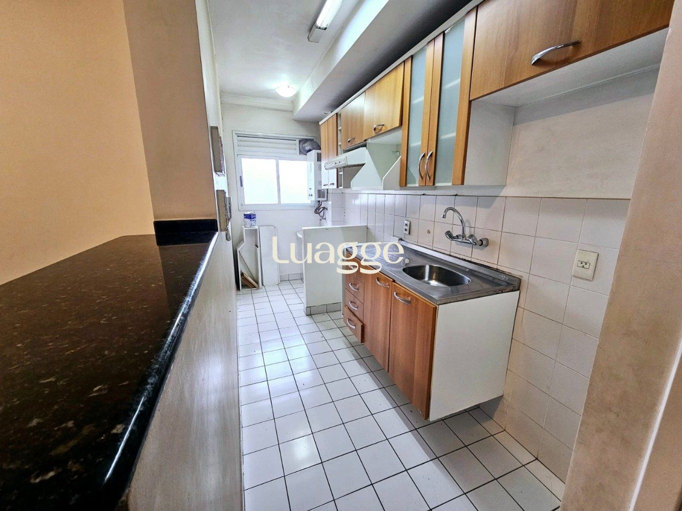 A sala é ampla e conta com sacada, proporcionando ótima iluminação e ventilação natural. A cozinha, possui churrasqueira, móveis planejados, balcão de madeira e piso em cerâmica, Área de serviço integrada com a cozinha.