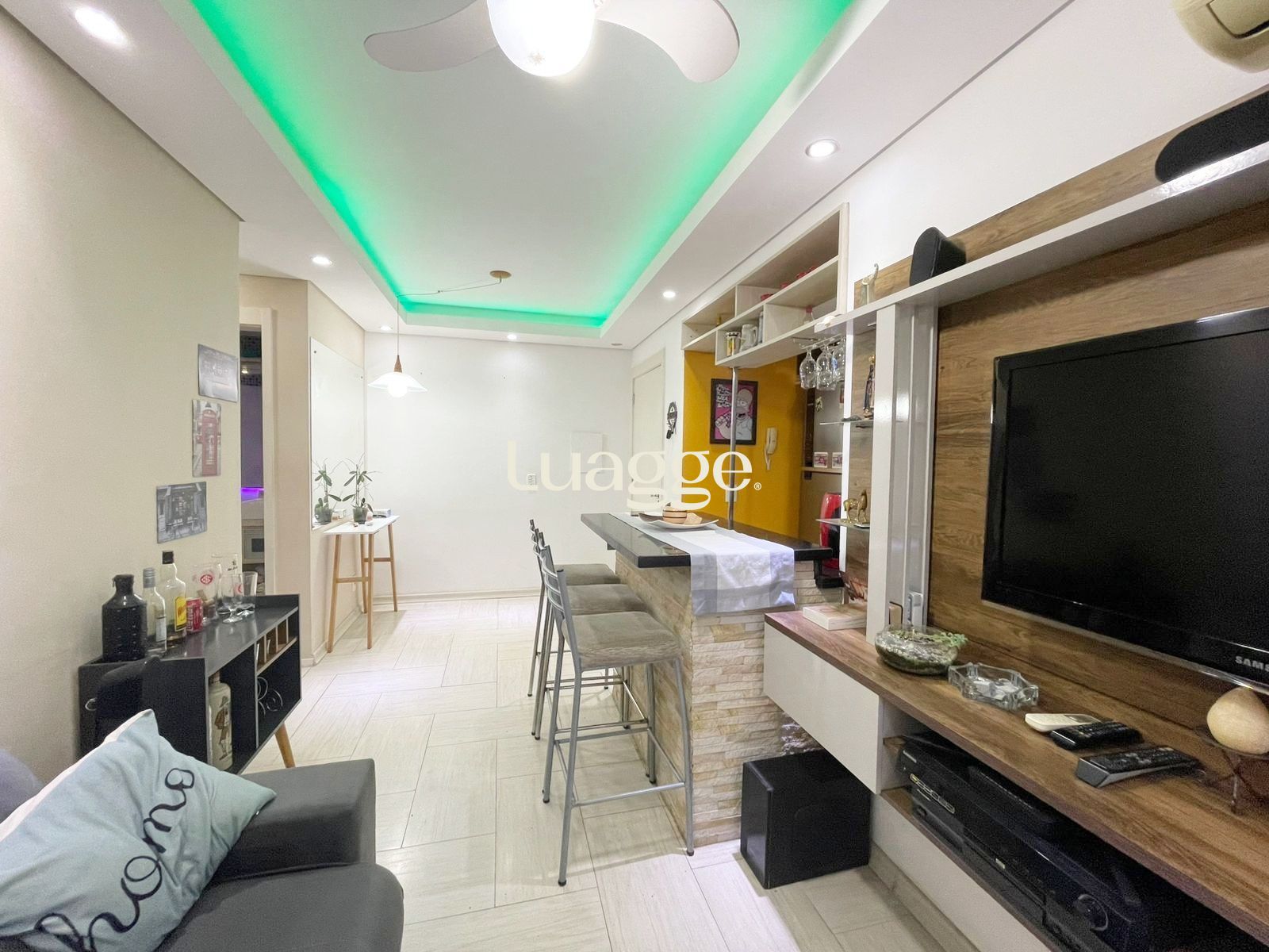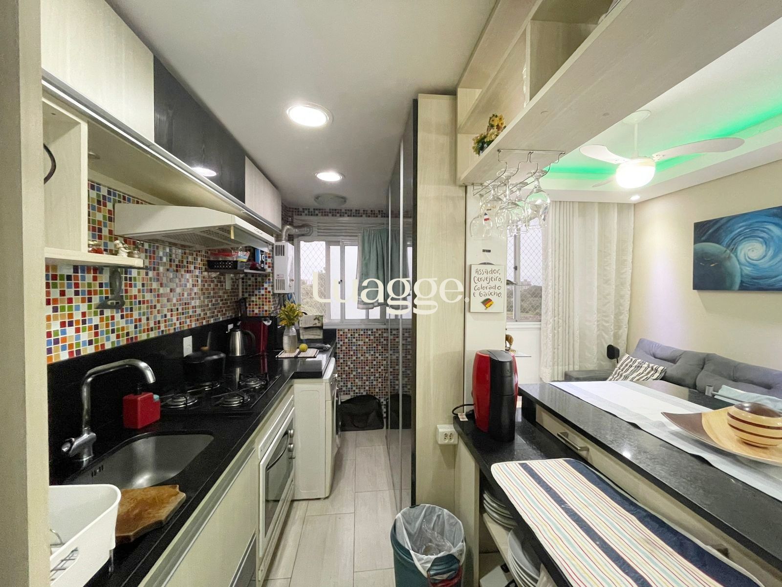 Excelente apartamento de 48,51m² com 2 dormitórios todo mobiliado, 1 banheiro com armário e box, living 02 ambientes com ármarios, sofá, mesa, cadeiras e split cozinha americana completa com armários, geladeira, cooktop, depurador e forno, área de serviço com aquecedor, tanque, máquina de lavar e armário. O piso é todo em porcelanato com ótima orientação solar. Uma vaga de garagem, escriturada e coberta.