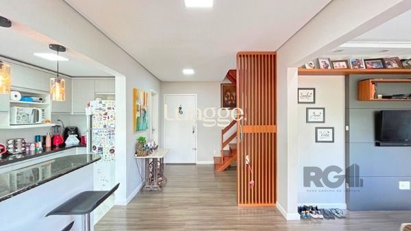 Este incrível apartamento duplex de 3 dormitórios no bairro Teresópolis, em Porto Alegre, oferece 126m² de área privativa e muito conforto. O living é amplo e conta com um super painel sob medida, enquanto o dormitório do casal tem um closet planejado, aproveitando ao máximo o espaço. O banheiro, também com móveis sob medida, e o lavabo finamente decorado, agregam sofisticação ao ambiente. A cozinha e a lavanderia são integradas e contam com móveis planejados, tornando o dia a dia mais prático e funcional.