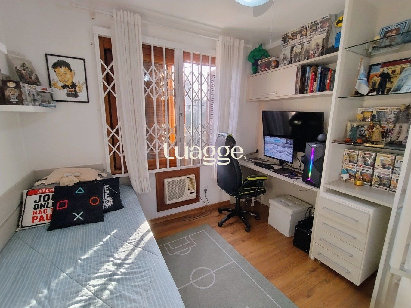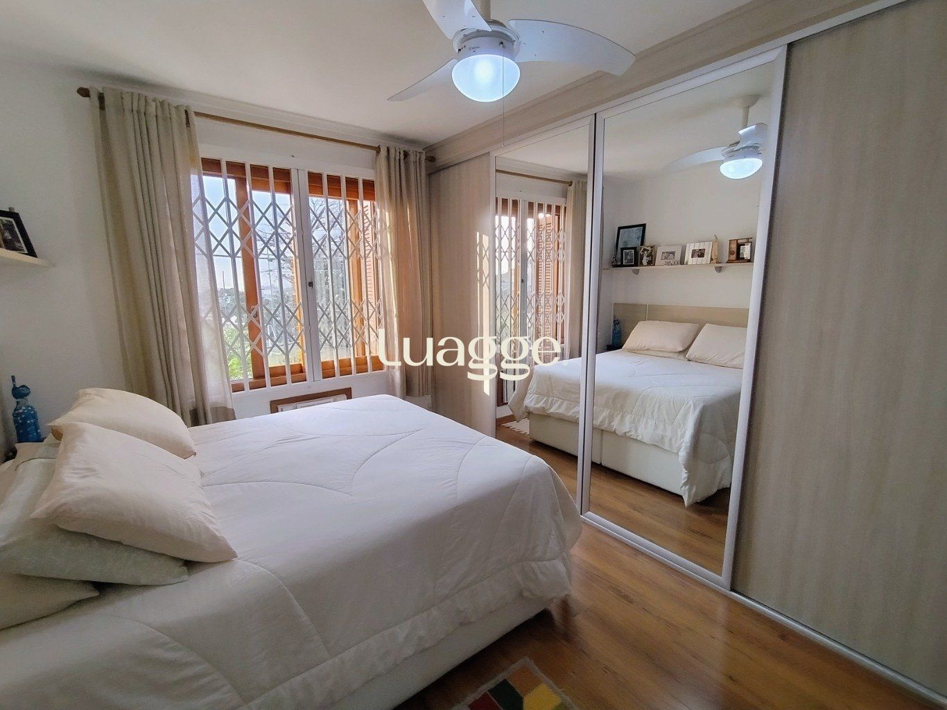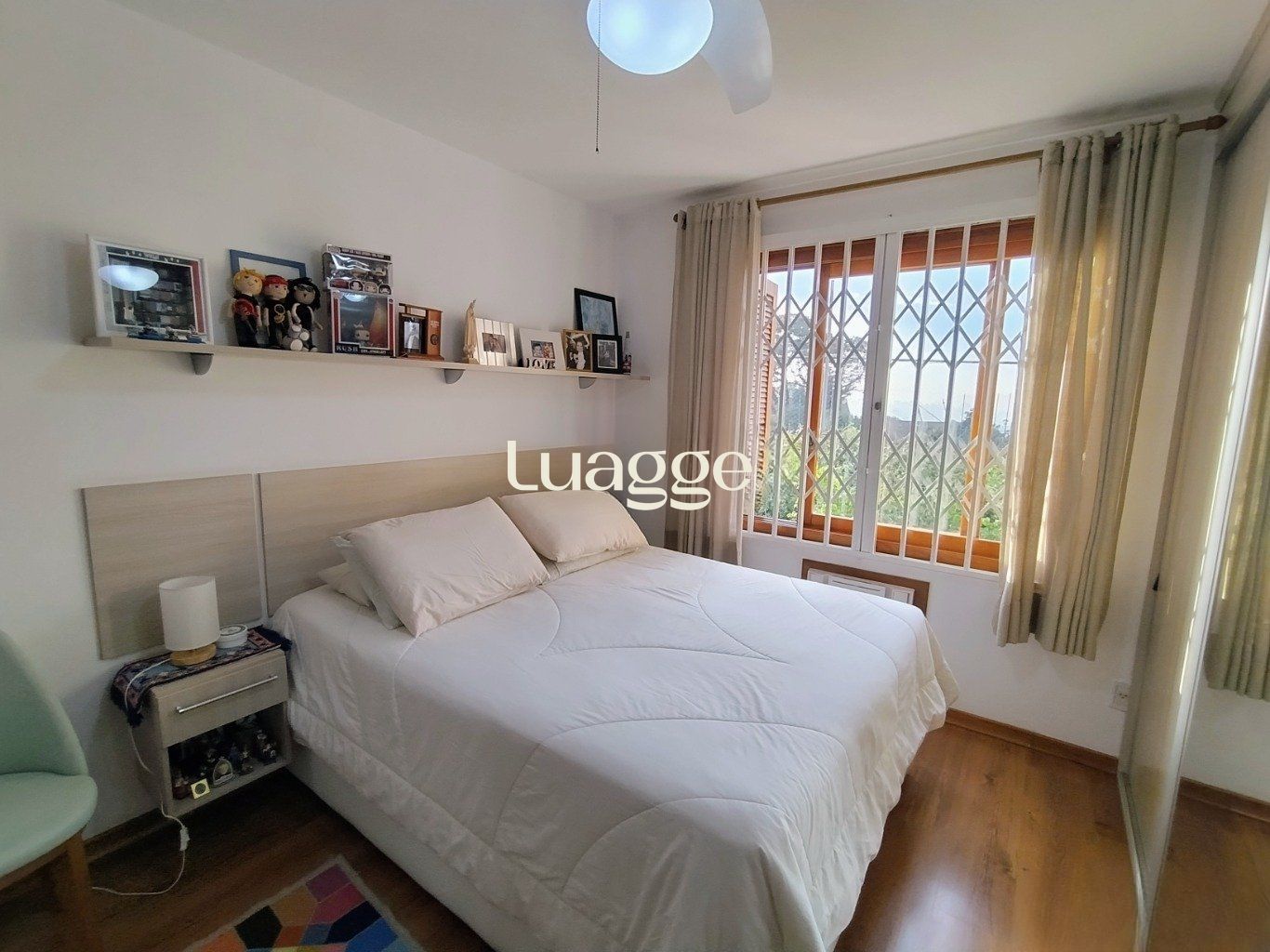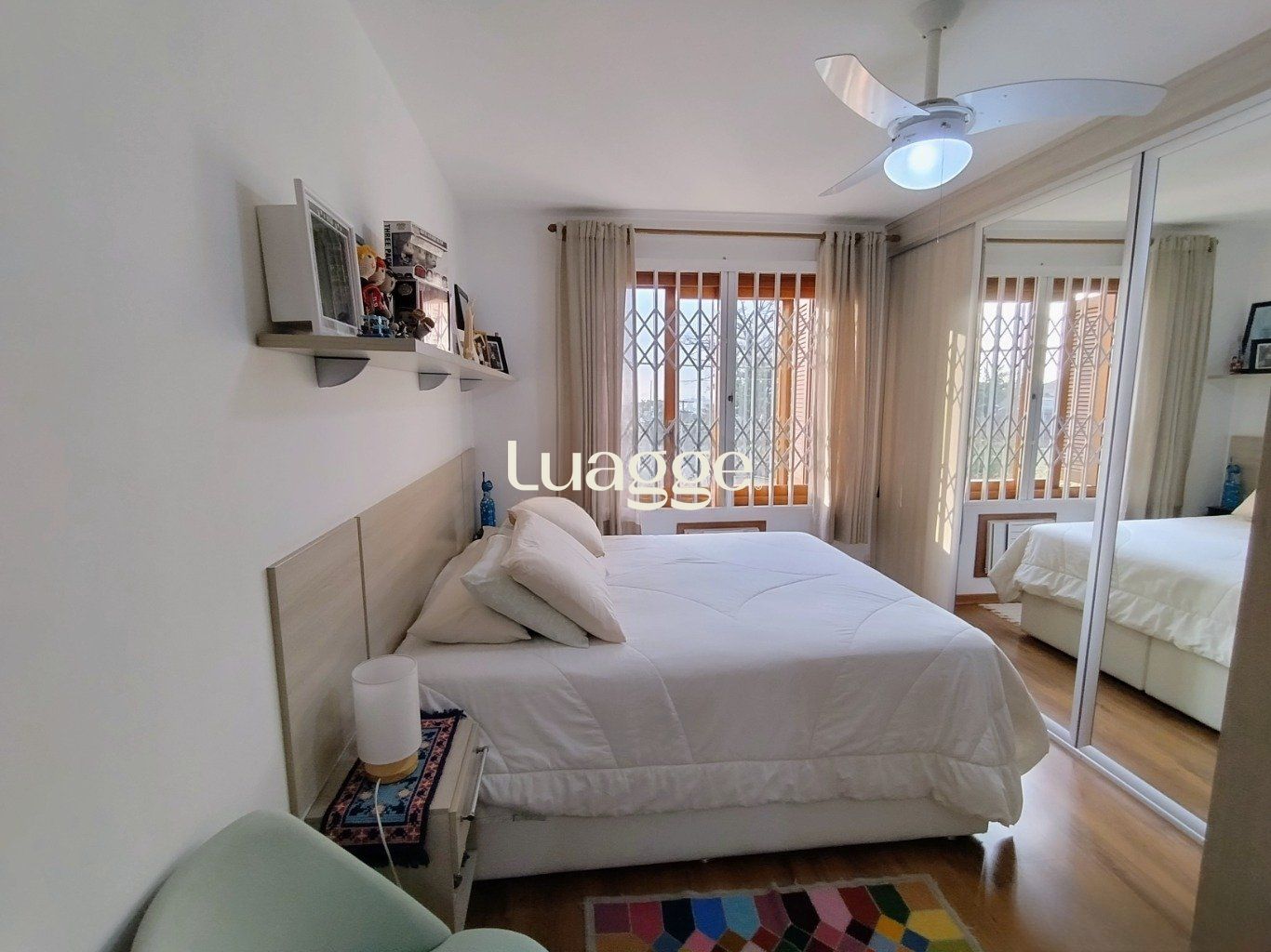 A sala é ampla, possui dois ambientes, janelas grandes e piso em cerâmica. A cozinha conta com armários sob medida, oferecendo ótimo aproveitamento de espaço. O primeiro dormitório é espaçoso, com ar-condicionado, excelente ventilação e boa incidência de luz natural. A suíte possui piso laminado, ventilador de teto e banheiro com box de vidro e janela voltada para a rua. A área de serviço é ampla, bem ventilada e conta com aquecimento a gás.