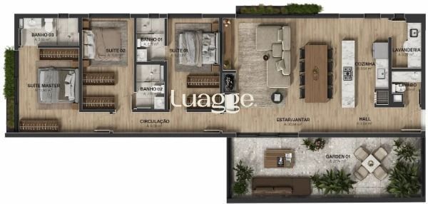 Apartamentos com 3 suites - Gardens, de 93m até 155m de área privativa.