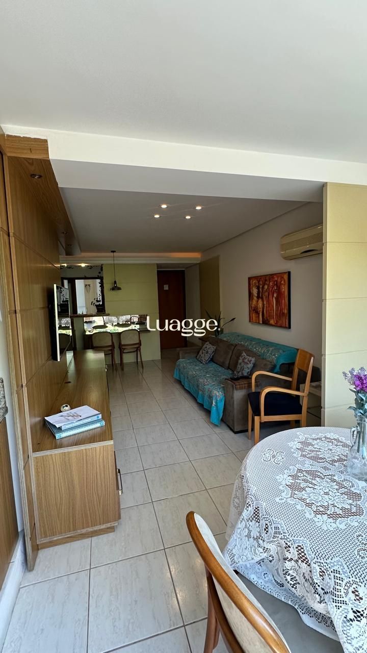 Apartamento 84,36 m², semimobiliado, living com sacada integrada com churrasqueira, lareira a gás.