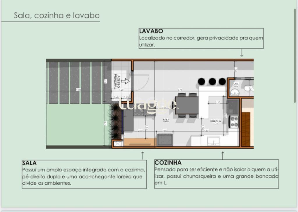Excelente casa térrea, composta por 3 dormitórios, sendo uma suíte máster e 2 suítes americanas, living para 2 ambientes, lavabo, lareira, cozinha americana com churrasqueira, lavanderia, pátio interno, e pátio nos fundos e 2 vagas de garagem.