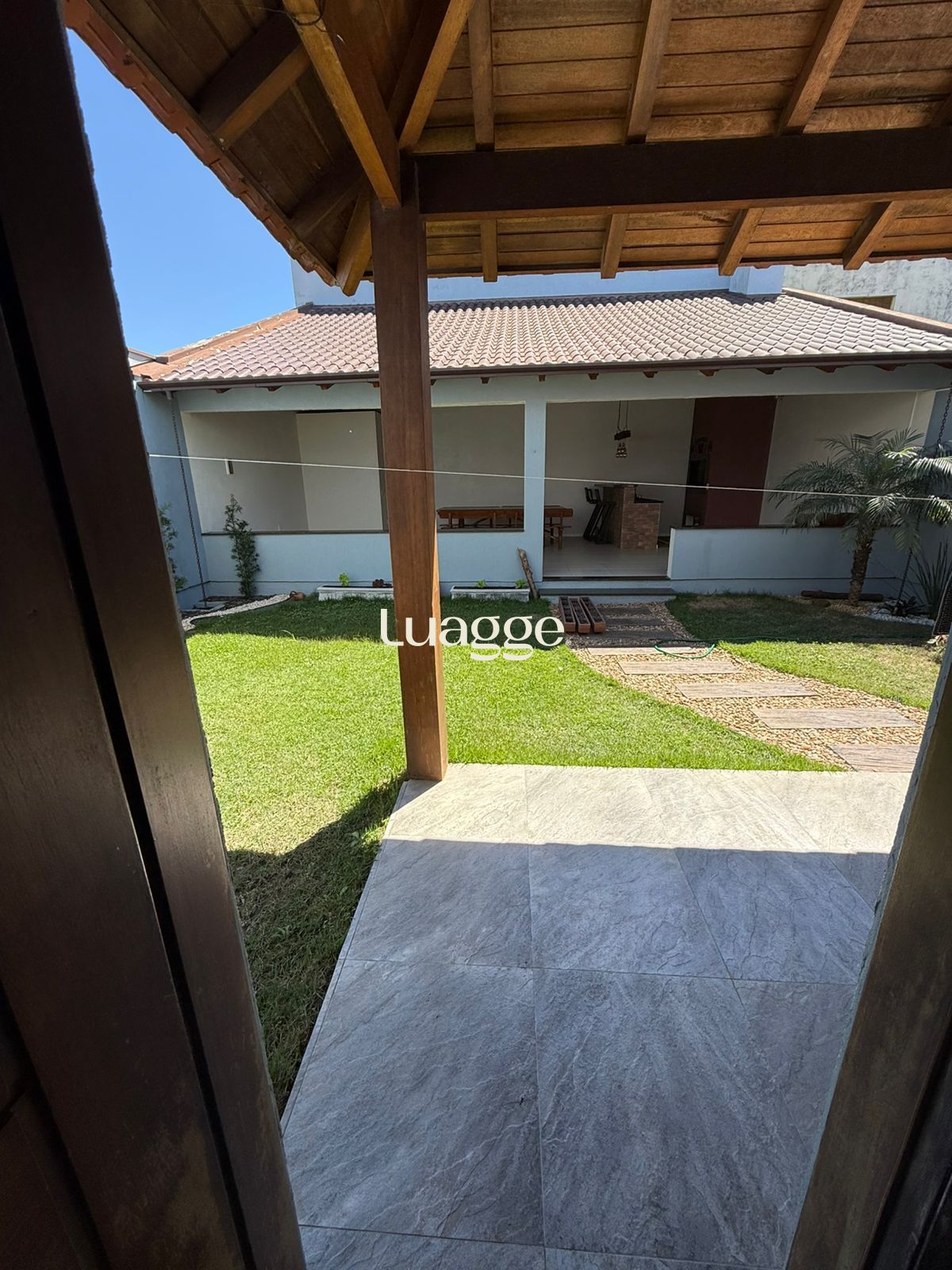 - Garagem coberta para dois carros lado a lado, com porta de acesso lateral para o interior da casa e corredor lateral de toda extensão da casa para acesso até a área de churrasco e lazer;