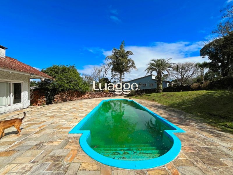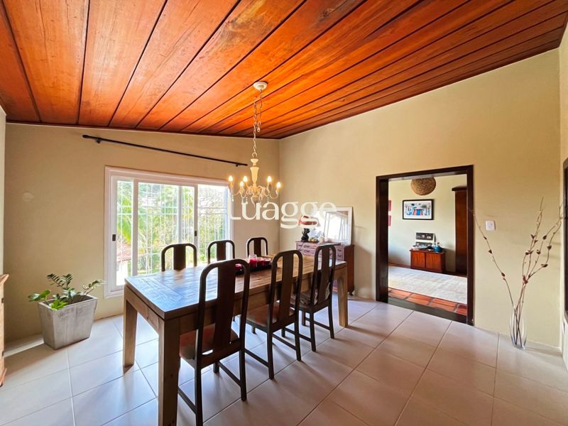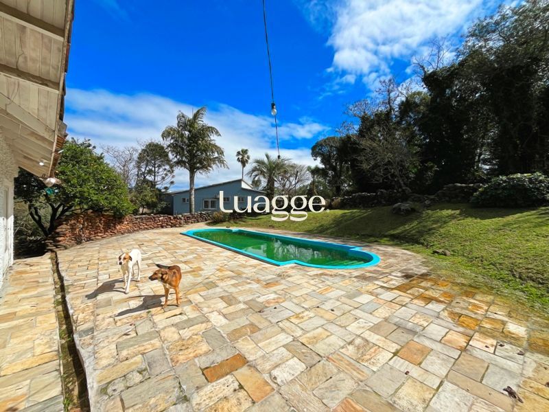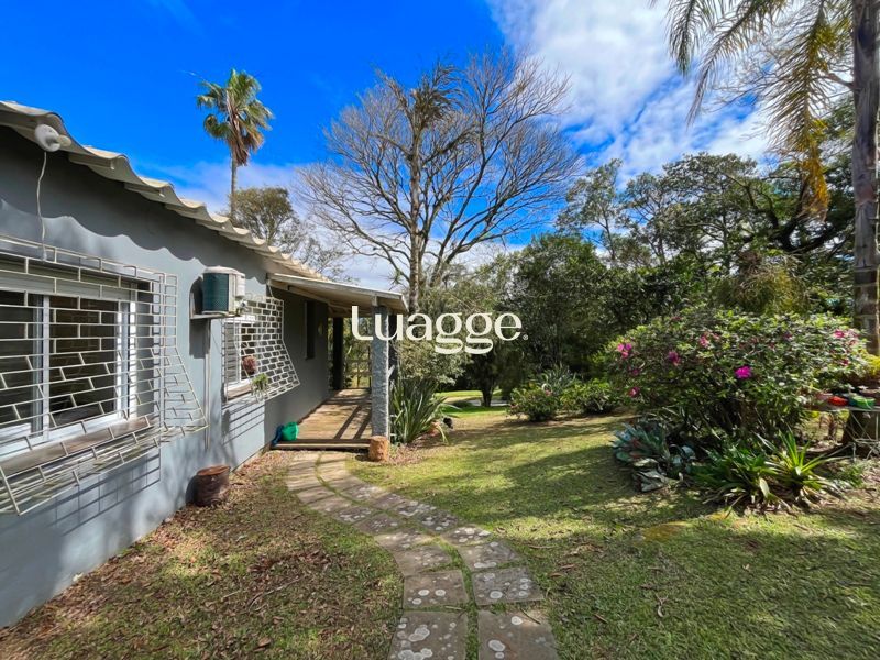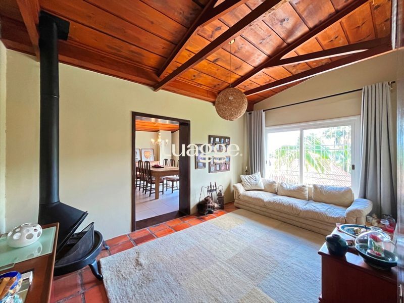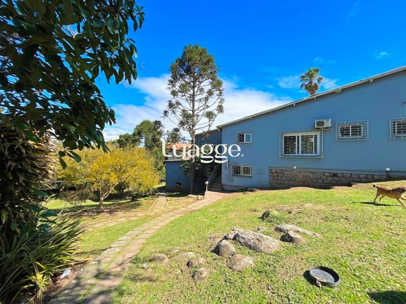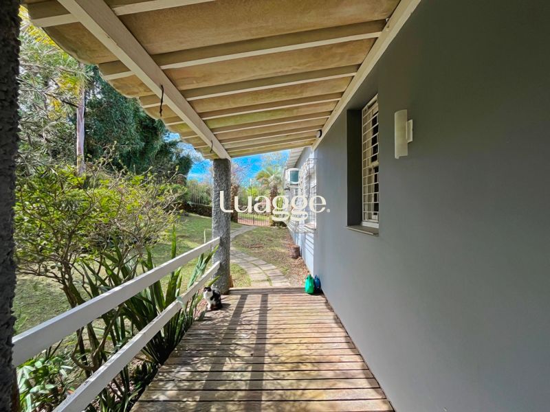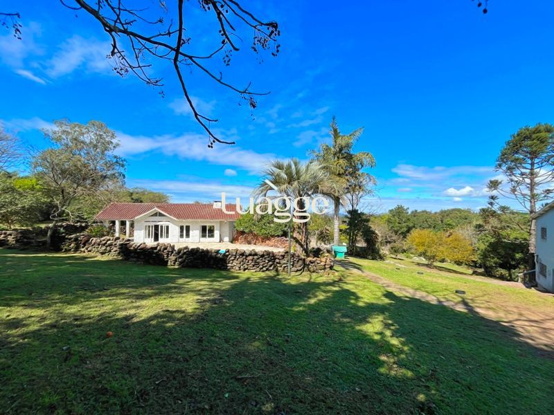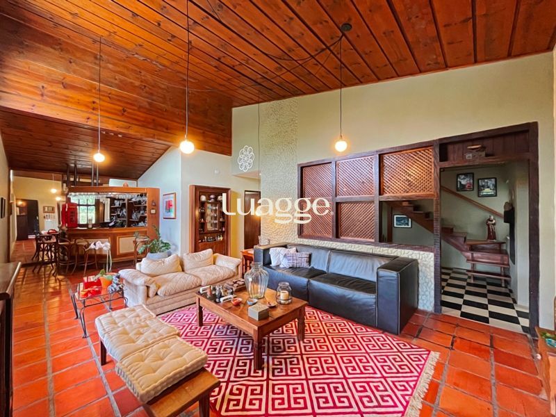 Os espaçosos living com 2 ambientes com lareira, closet, despensa, escritório, cozinha com armários embutidos, lavanderia, fogão a lenha, sala de estar e jantar. Além de uma área de lazer completa com churrasqueira, piscina, salão de festas e jardim. A propriedade também conta com depósito, pátio com canil e árvores frutíferas.