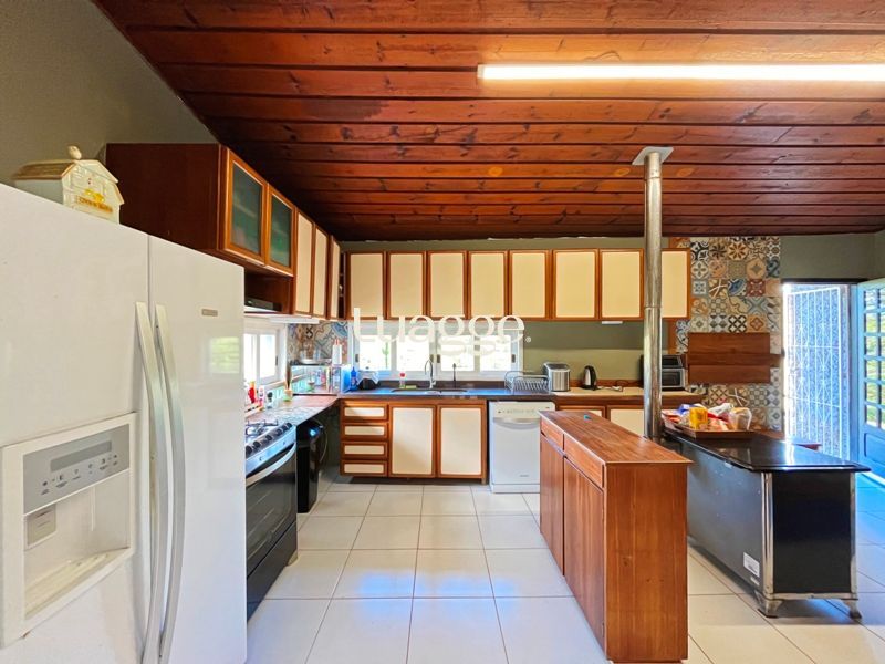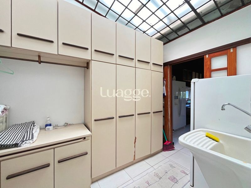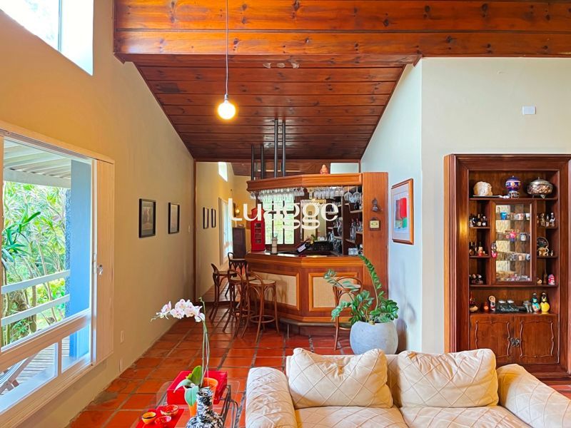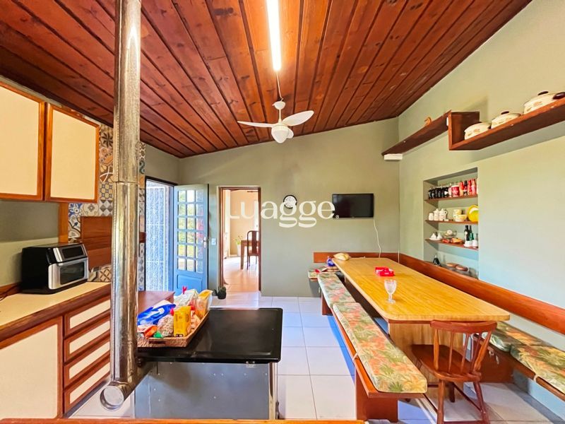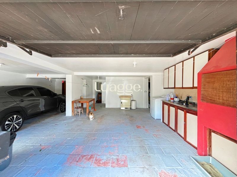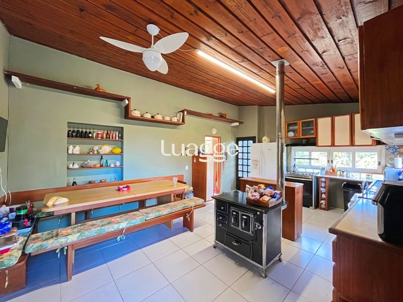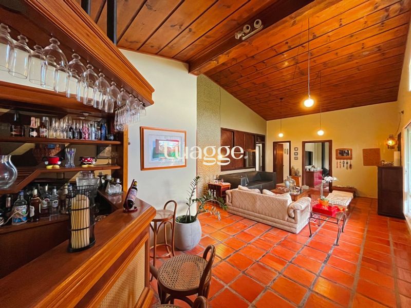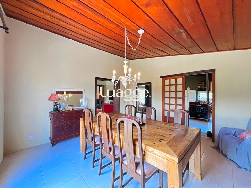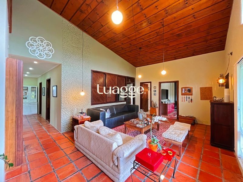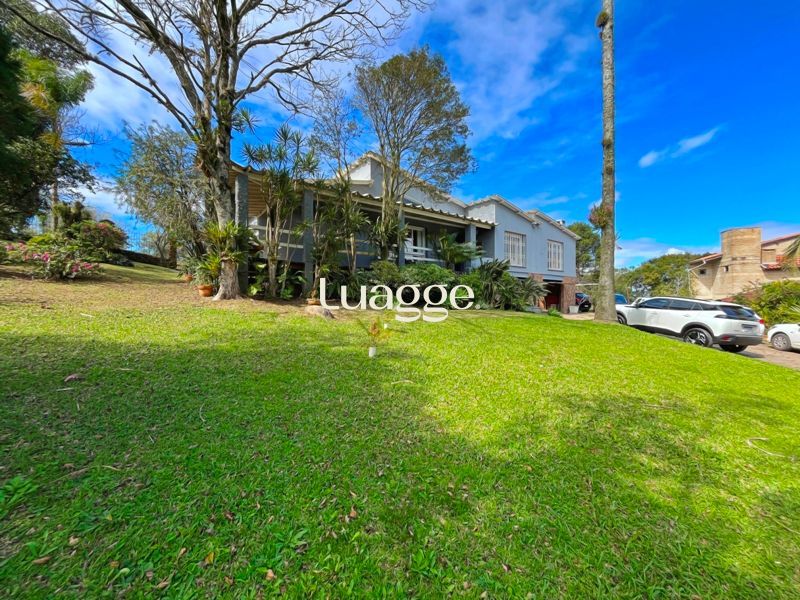 Os espaçosos living com 2 ambientes com lareira, closet, despensa, escritório, cozinha com armários embutidos, lavanderia, fogão a lenha, sala de estar e jantar. Além de uma área de lazer completa com churrasqueira, piscina, salão de festas e jardim. A propriedade também conta com depósito, pátio com canil e árvores frutíferas.