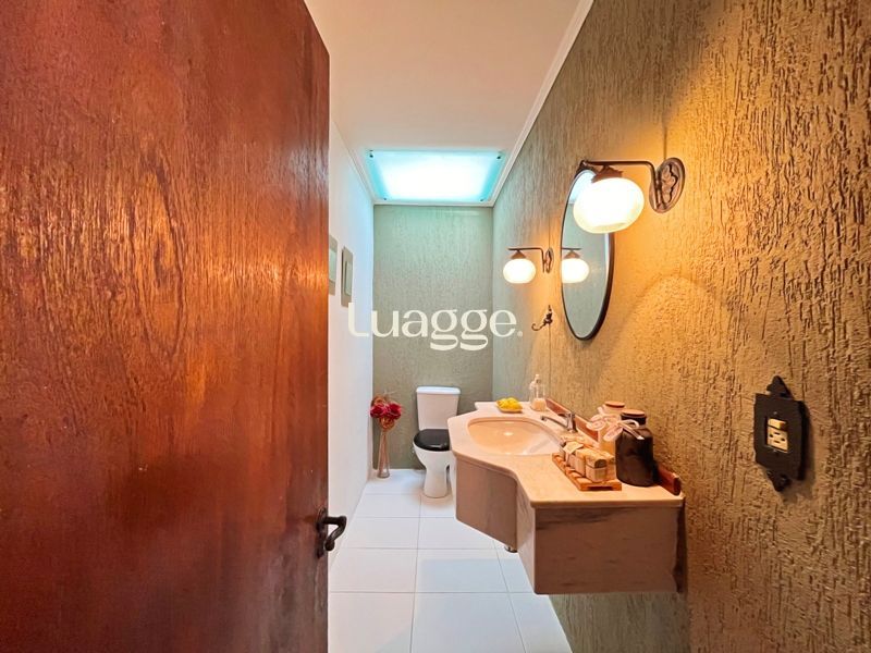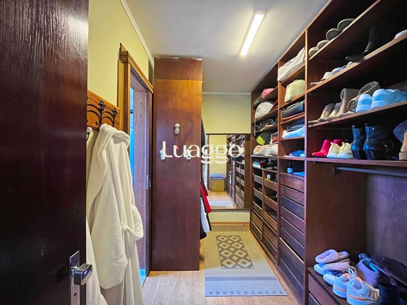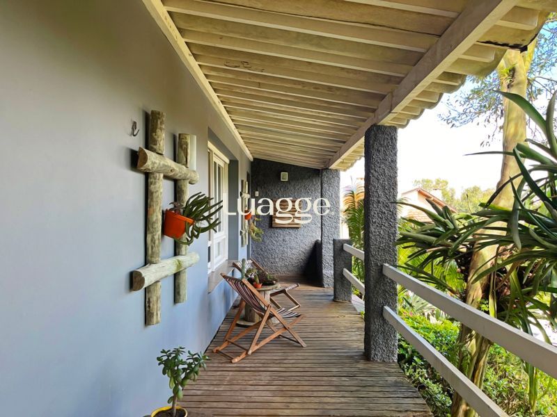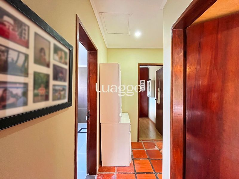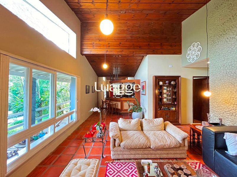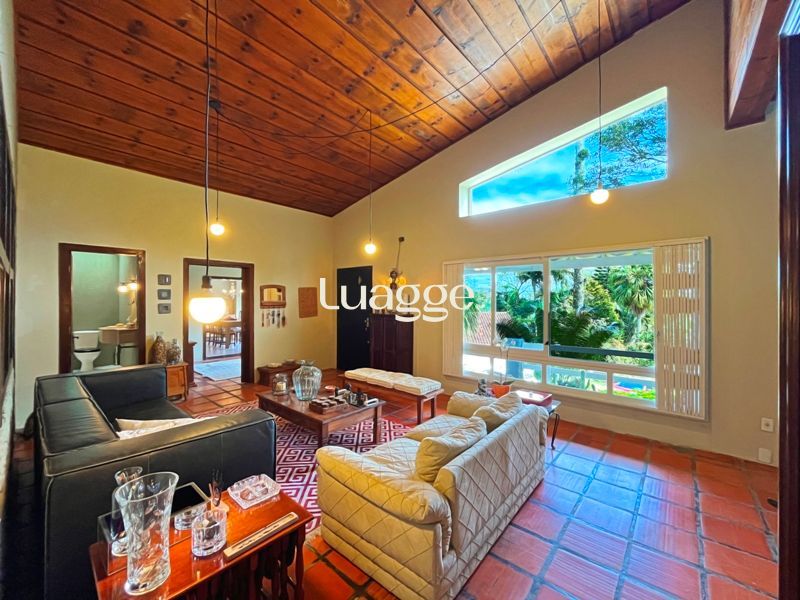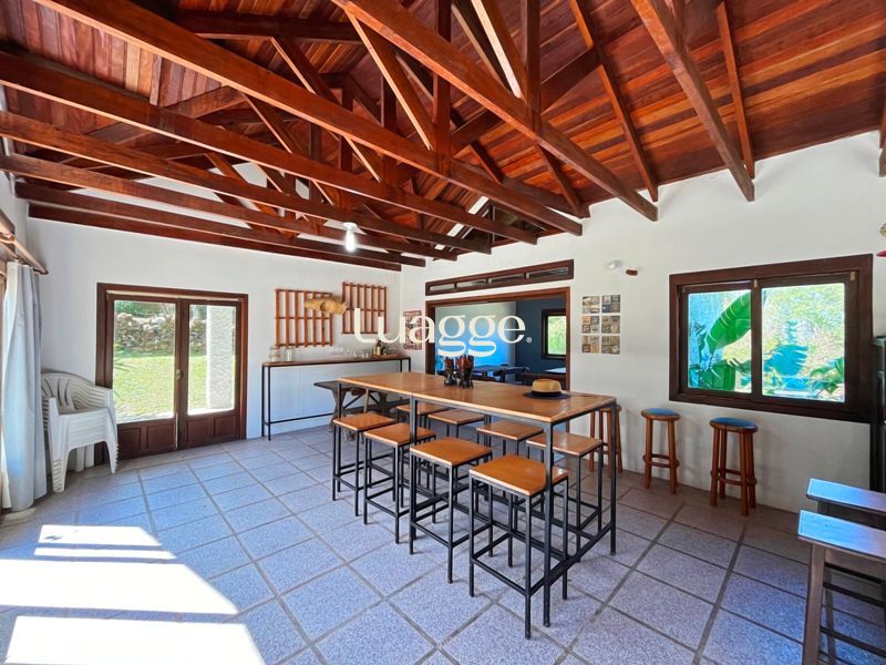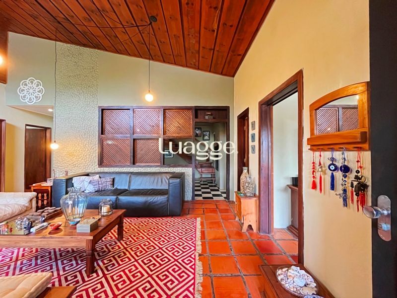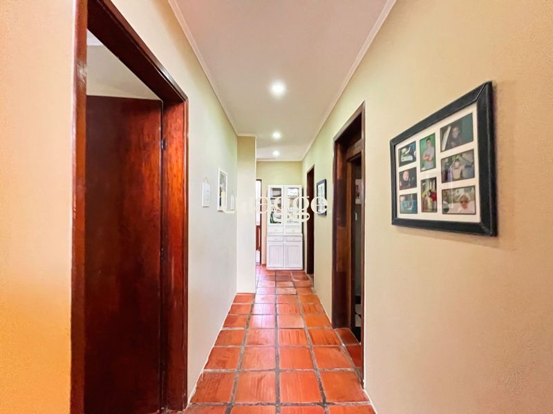 Os espaçosos living com 2 ambientes com lareira, closet, despensa, escritório, cozinha com armários embutidos, lavanderia, fogão a lenha, sala de estar e jantar. Além de uma área de lazer completa com churrasqueira, piscina, salão de festas e jardim. A propriedade também conta com depósito, pátio com canil e árvores frutíferas.