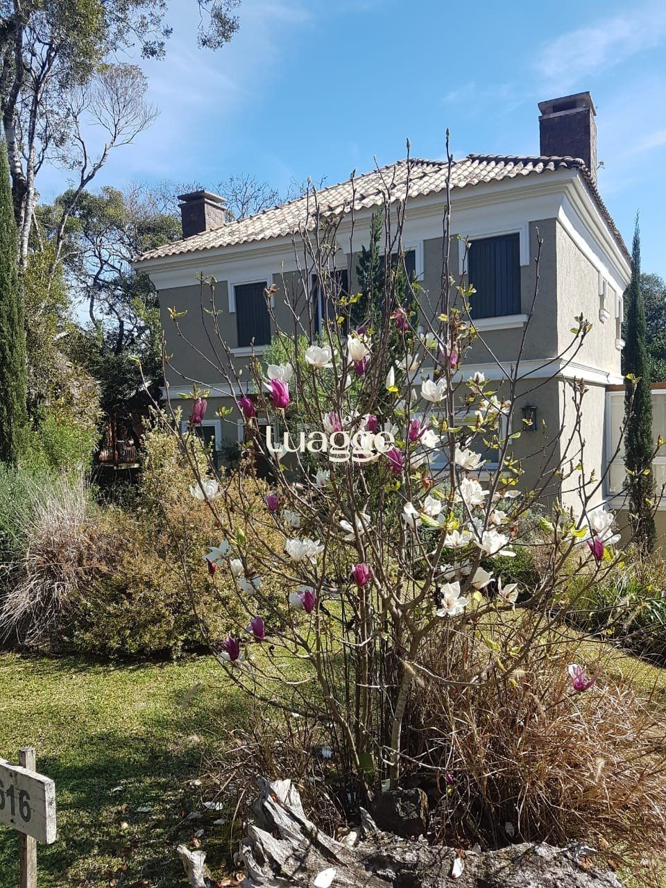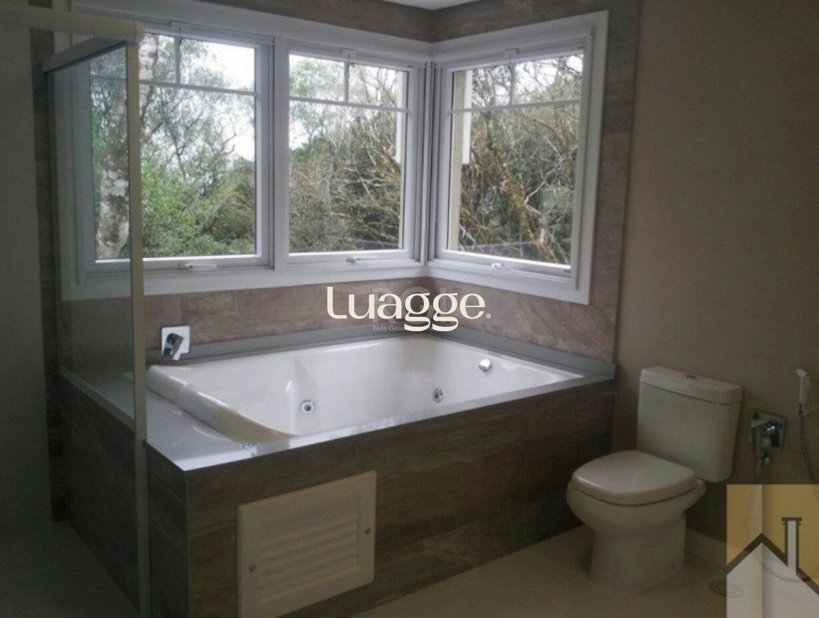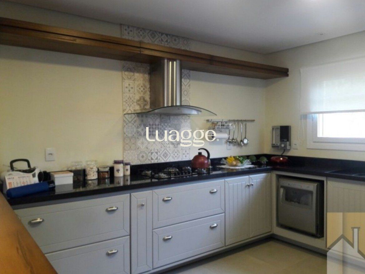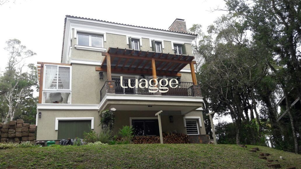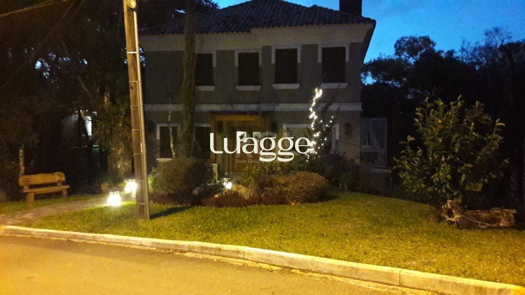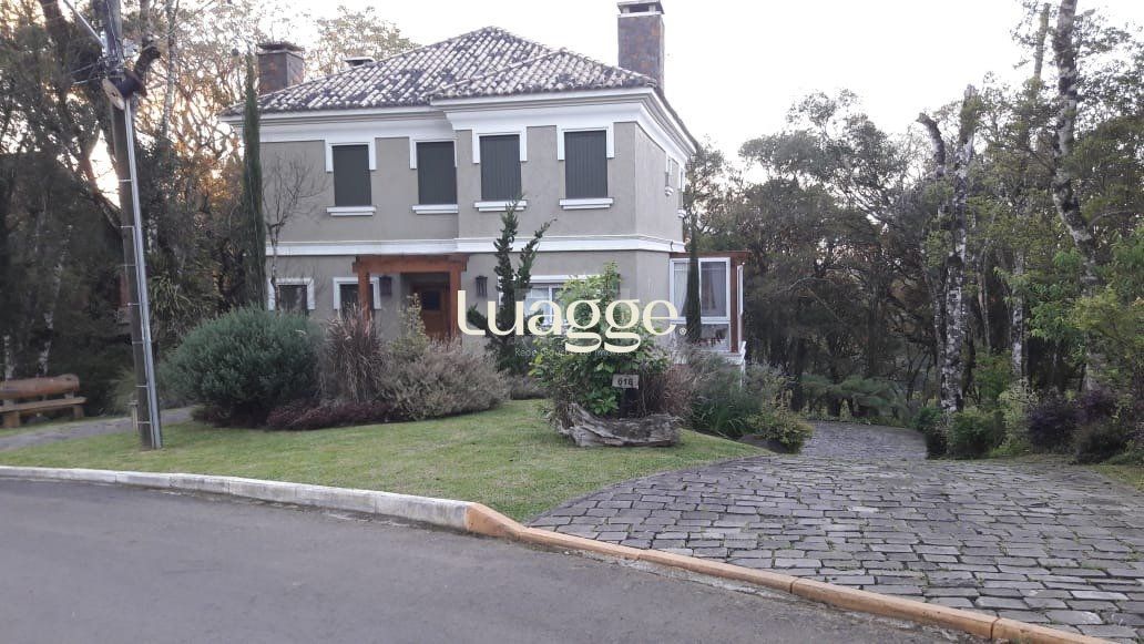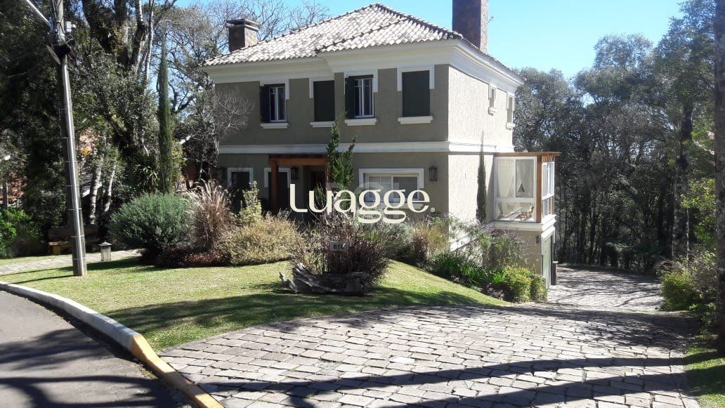 Casa semimobiliada em condomínio fechado, Lagos de Gramado, três suítes, master com closet e hidromassagem, amplo living com lareira, churrasqueira e espaço gourmet, projetos paisagísticos e iluminação.
