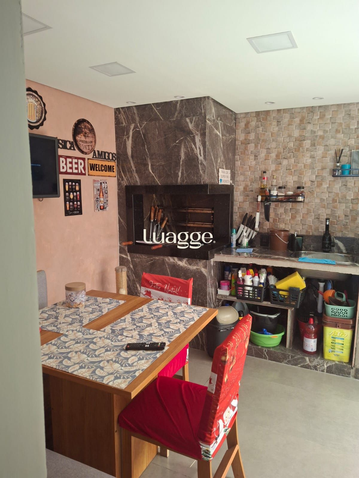 Ampla sala dois ambientes. Cozinha com churrasqueira e pátio fechado. 3 dormitórios com 1 suíte e closet. Ficam todos móveis fixos. 02 vagas de garagem. Sol da tarde.