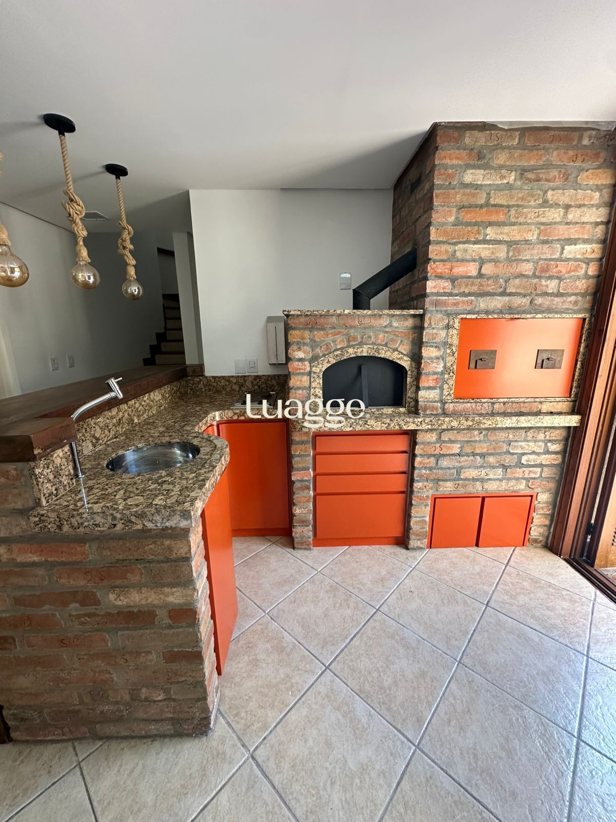2º Andar: Living para 3 ambientes com lareira e lavabo, sala de jantar com sacada e churrasqueira, cozinha e lavanderia.