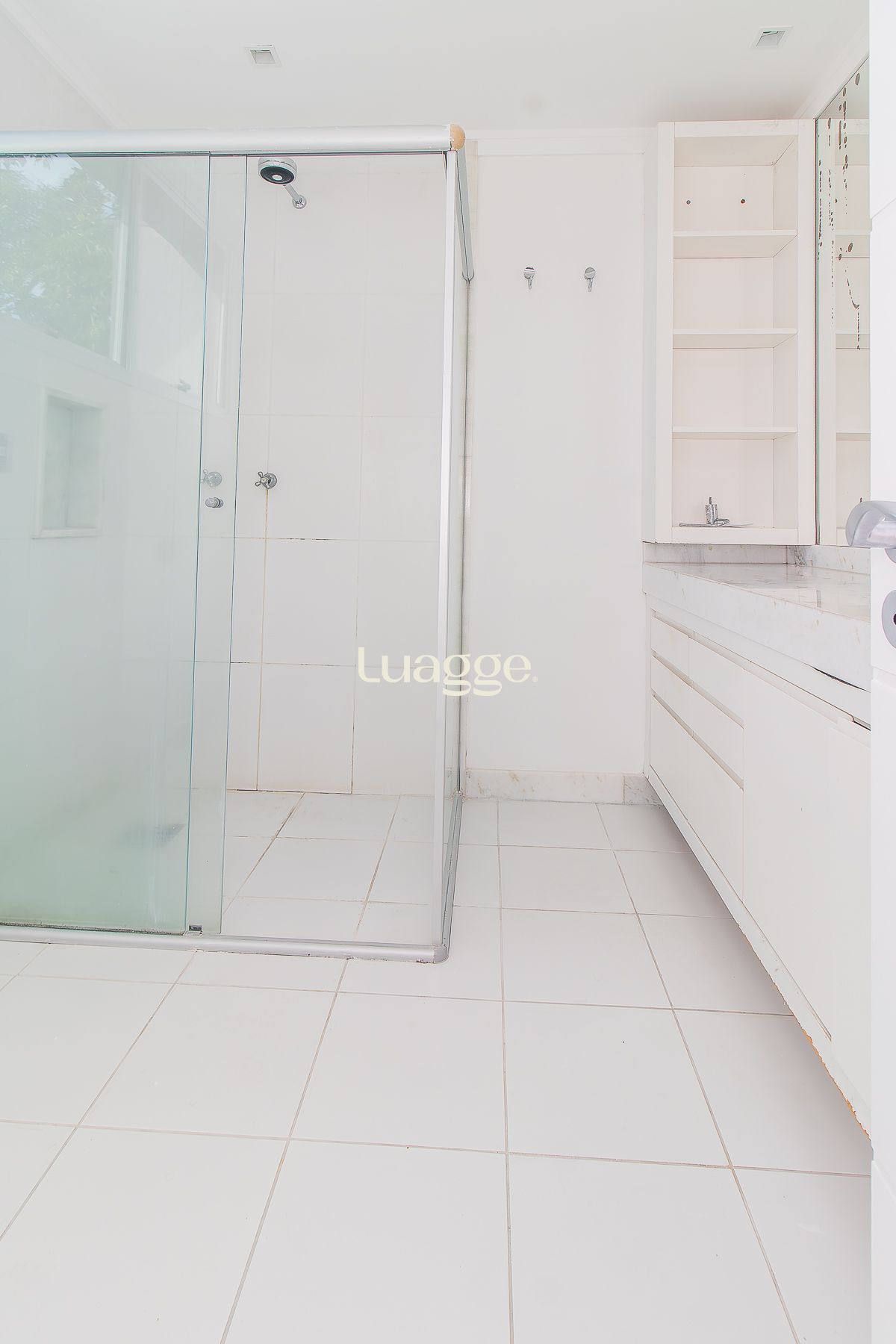 No andar térreo: garagem com 02 vagas cobertas, área de serviço completa, banheiro auxiliar, depósito e pátio com churrasqueira.
