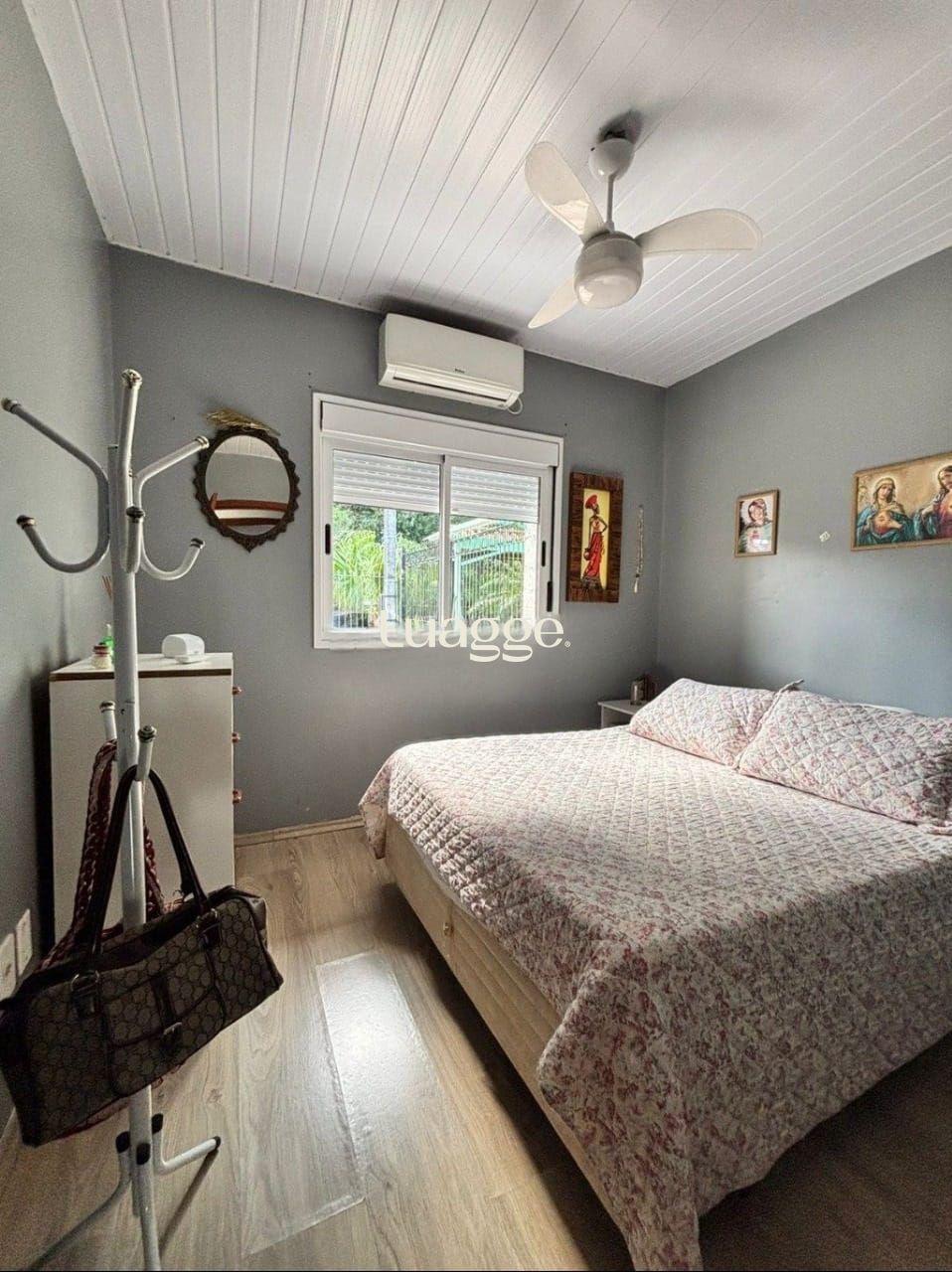 Com 2 quartos espaçosos, 1 banheiro, e 2 vagas de garagem, esta casa é ideal para casais, famílias ou investidores. O imóvel possui uma área total de 46m², oferecendo amplo espaço. Fica no imóvel 2 splits, armários da cozinha, prateleiras da sala e guarda roupa do quarto dos fundos