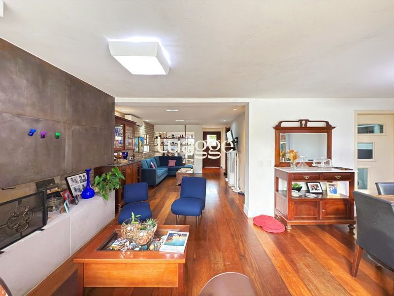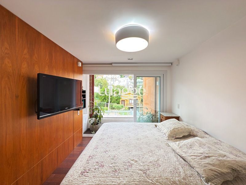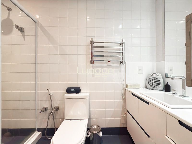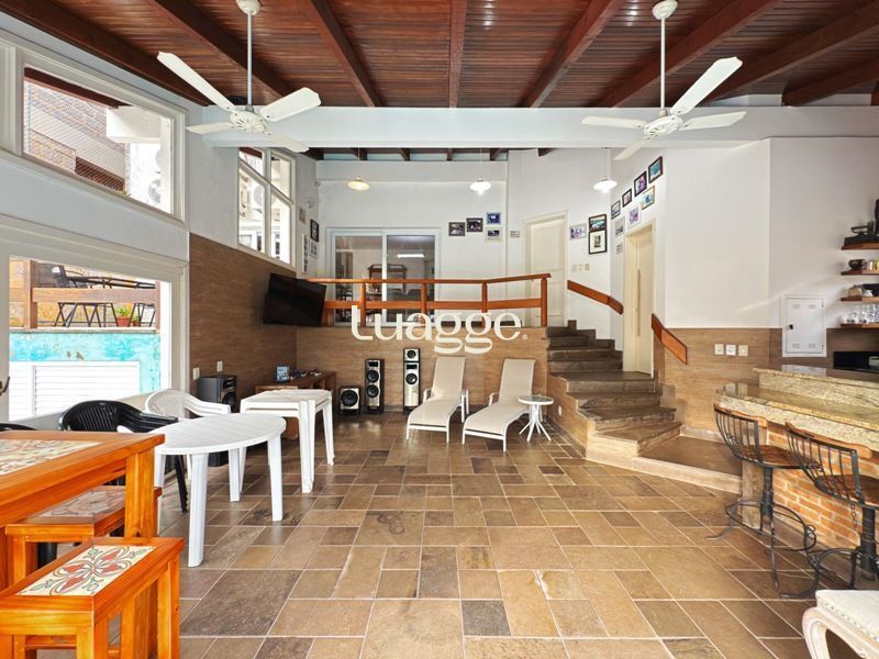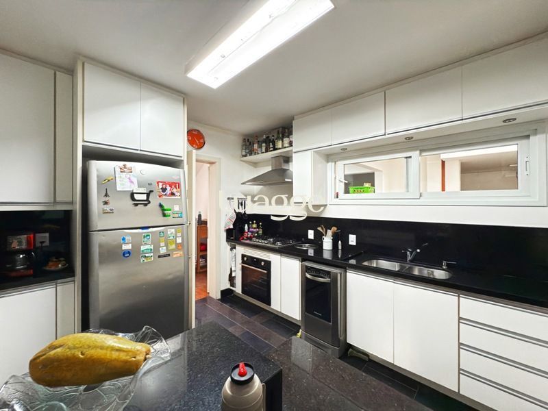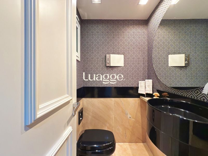 Parte social composta de duas salas muito espaçosas e lavabo, integradas ao ambiente de sala jantar e onde uma lareira diferenciada também faz parte, tendo uma porta de acesso a um amplo terraço com vista. Cozinha completamente montada.