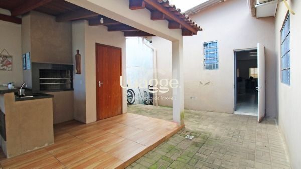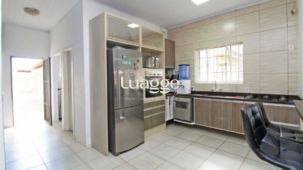 Linda casa térrea com 03 dormitórios, sendo 01 suíte com closet, living 02 ambientes com lareira,01 banheiro com box de vidro, 01 cozinha estilo americana estilo americana com móveis planejados, água quente em toda casa(gás), 02 vagas para veículos coberta. Espaço gourmet com churrasqueira, 01 lavabo, lugar para 02 redes de descanso. Um pátio amplo com uma piscina de 4x8m e ao fundo 01 espaço onde já contém uma horta orgânica e árvores frutíferas.