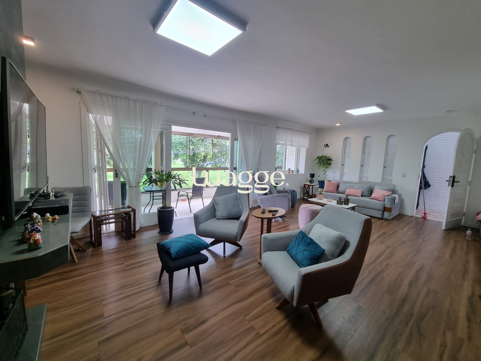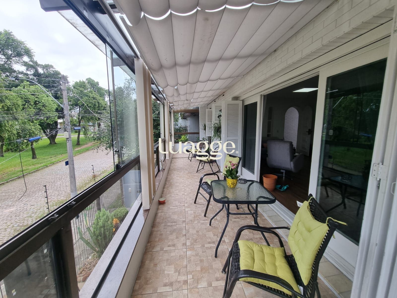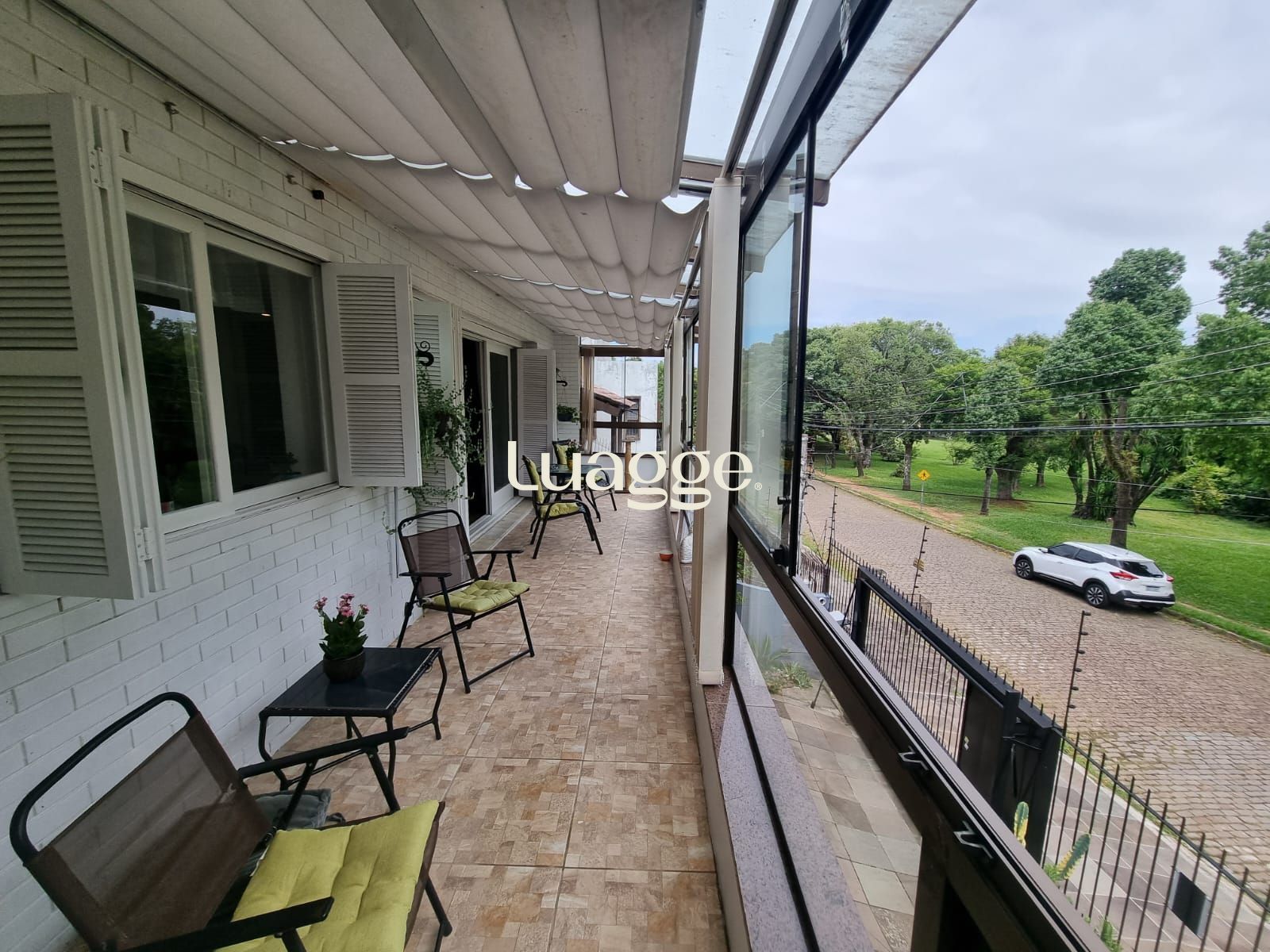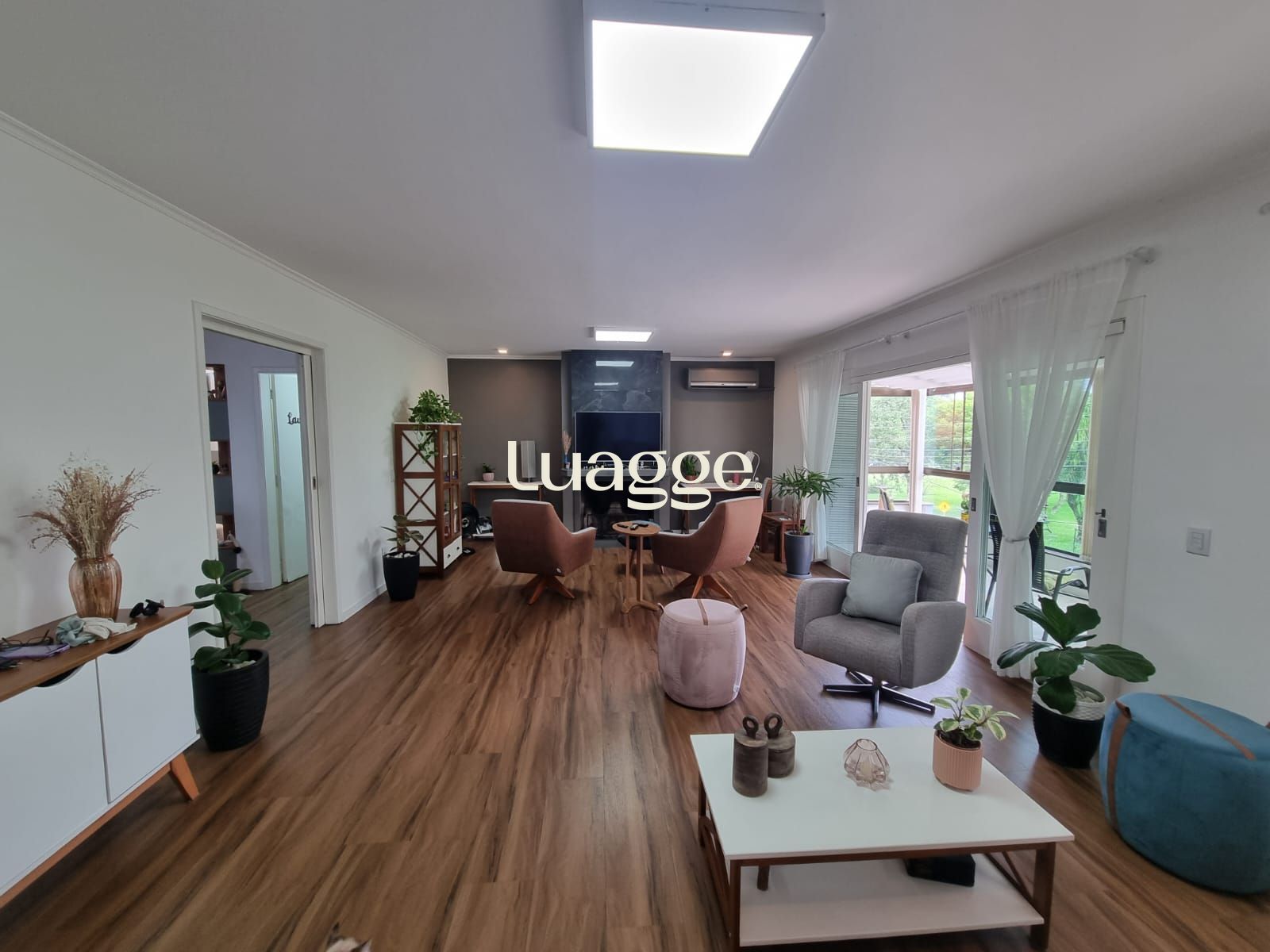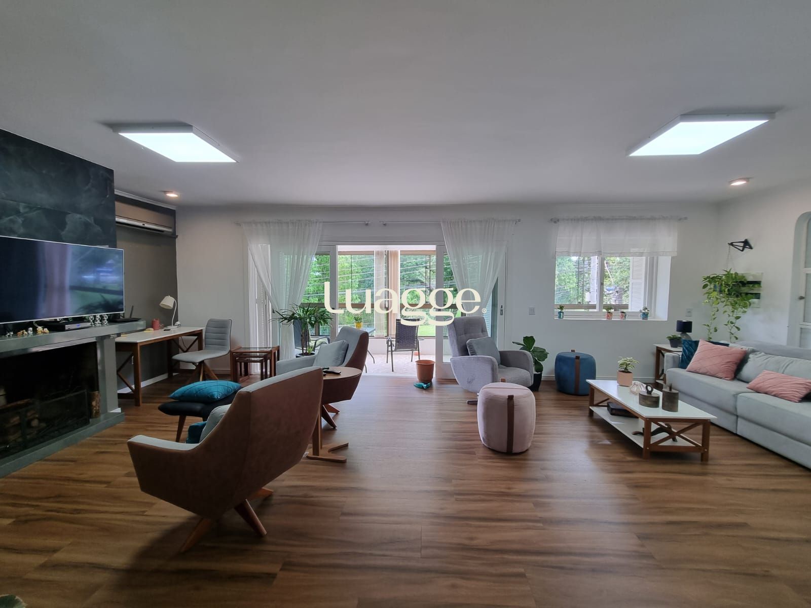 🔹 Ambientes sociais: Ao subir a escada de acesso, você encontra um ambiente 100% térreo, onde uma ampla e charmosa sala de estar se divide em dois aconchegantes ambientes. A sala se integra a uma sacada espaçosa e fechada com vidro, equipada com cortinas retráteis no teto, garantindo conforto térmico e privacidade. Para os dias mais frios, a lareira proporciona um toque acolhedor, enquanto o split mantém o ambiente sempre agradável.