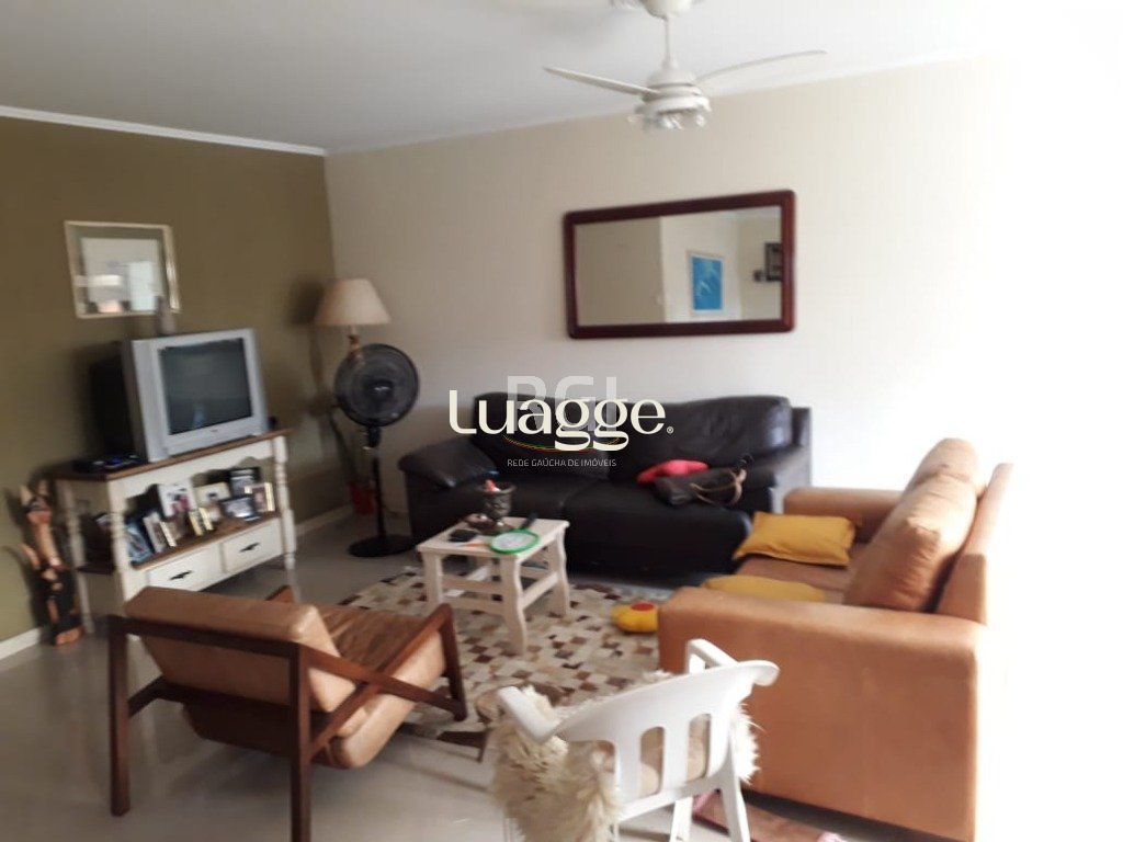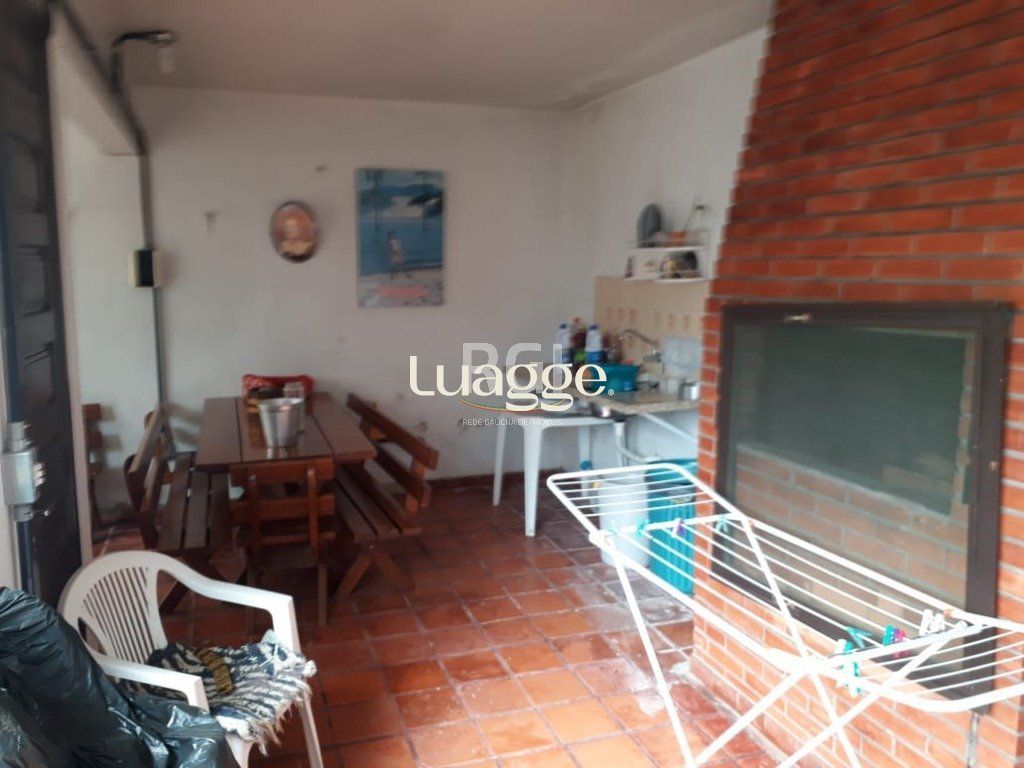 Ótima casa com 3 dormitórios sendo uma suíte, living 2 ambientes, banho social e lavabo, com churrasqueira, lareira, praça e dependência de empregada, tudo em porcelanato. Ao fundo tem construção dois pisos sendo em baixo salão de festa com churrasqueira e dependência, e acima, outra peça grande. Vaga para 3 carros.