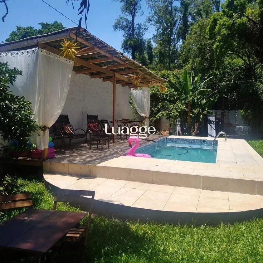 Linda casa com estrutura de pedra e tijolo à vista, 3 quartos, sala,3 banheiros, cozinha ,piscina, espaço pra festas, lareira, churrasqueira e fogão campeão.