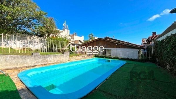 Ótima residência 4 dormitórios, suíte c/hidro e closet, living 2 ambientes c/lareia (em tabuão), lavabo, gabinete, estar íntimo, sala de jantar, copa/cozinha montada, dependência de empregada, despensa, garagem para 5 carros, água quente, salão de festas, churrasqueira, pátio c/piscina. Com vista p/o rio.