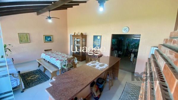 Para os momentos de lazer, a casa possui uma área gourmet com churrasqueira, perfeita para receber amigos e familiares. Há também uma dependência de empregada, área de serviço e um pátio amplo com jardim, proporcionando um espaço agradável ao ar livre.