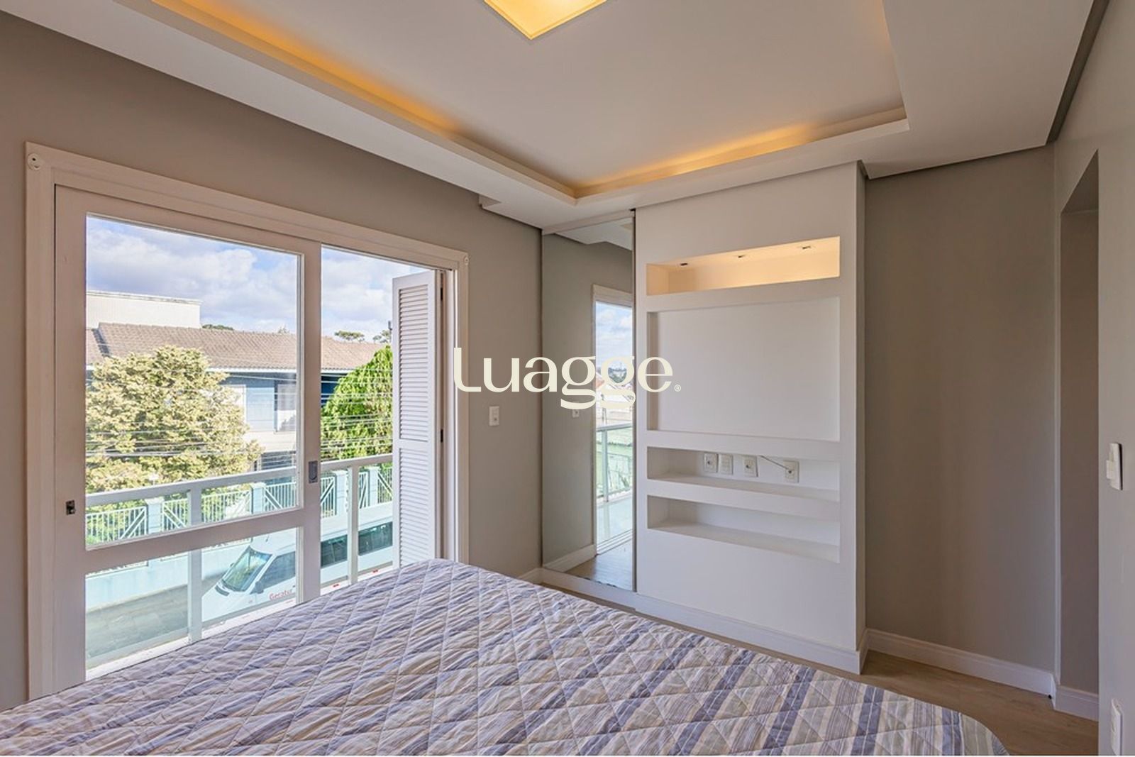 A fachada é imponente e reforça o padrão do imóvel, que conta com 2 vagas de garagem.