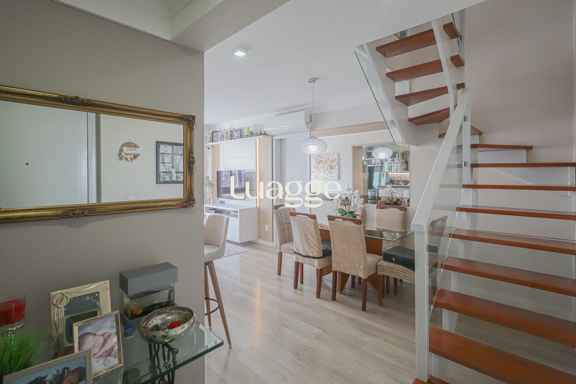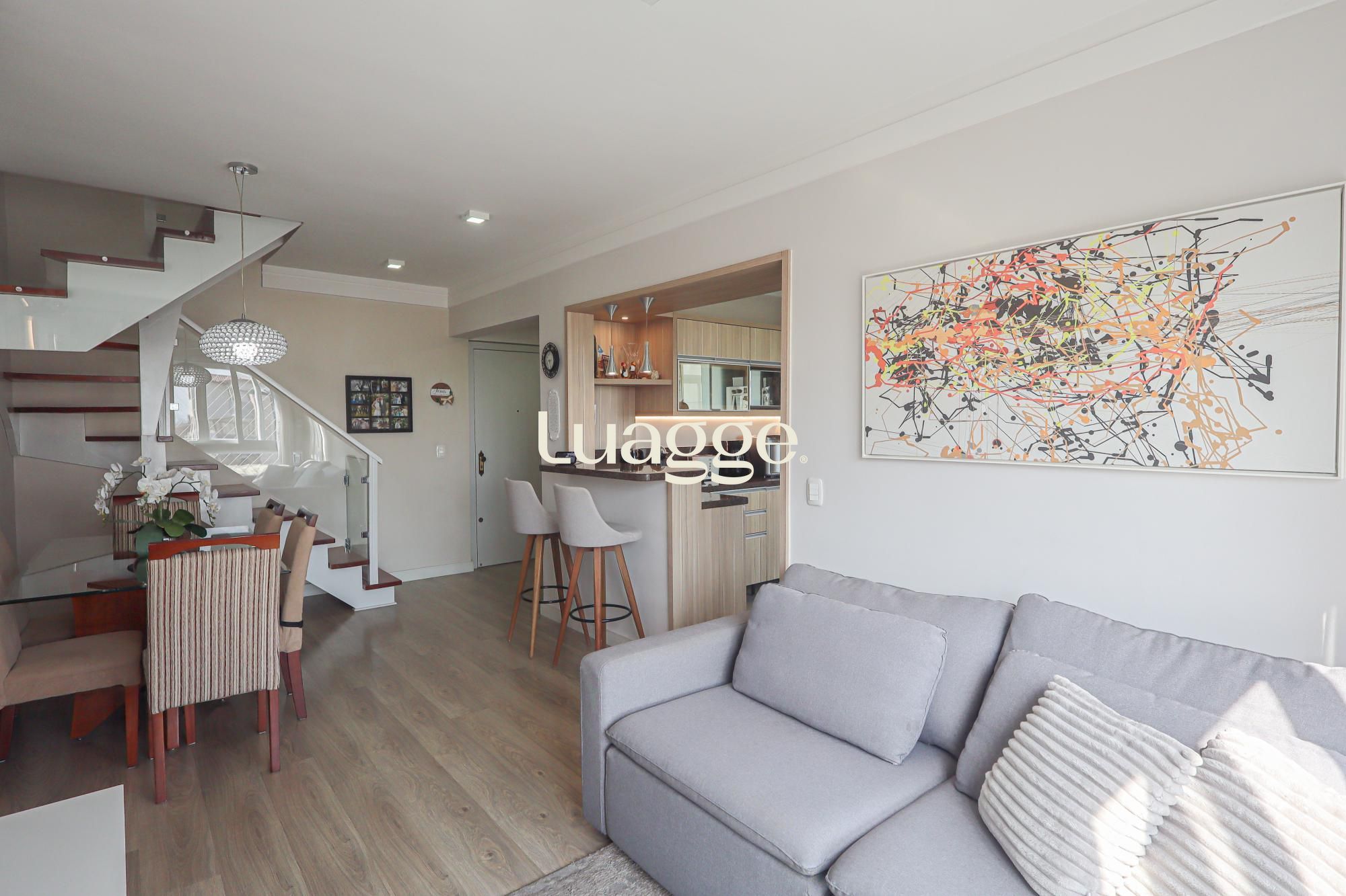 O primeiro pavimento oferece 2 dormitórios, banheiro social com ventilação natural, living amplo para 2 ambientes, cozinha americana planejada com área de serviço individual e dependência de empregada com banheiro auxiliar.