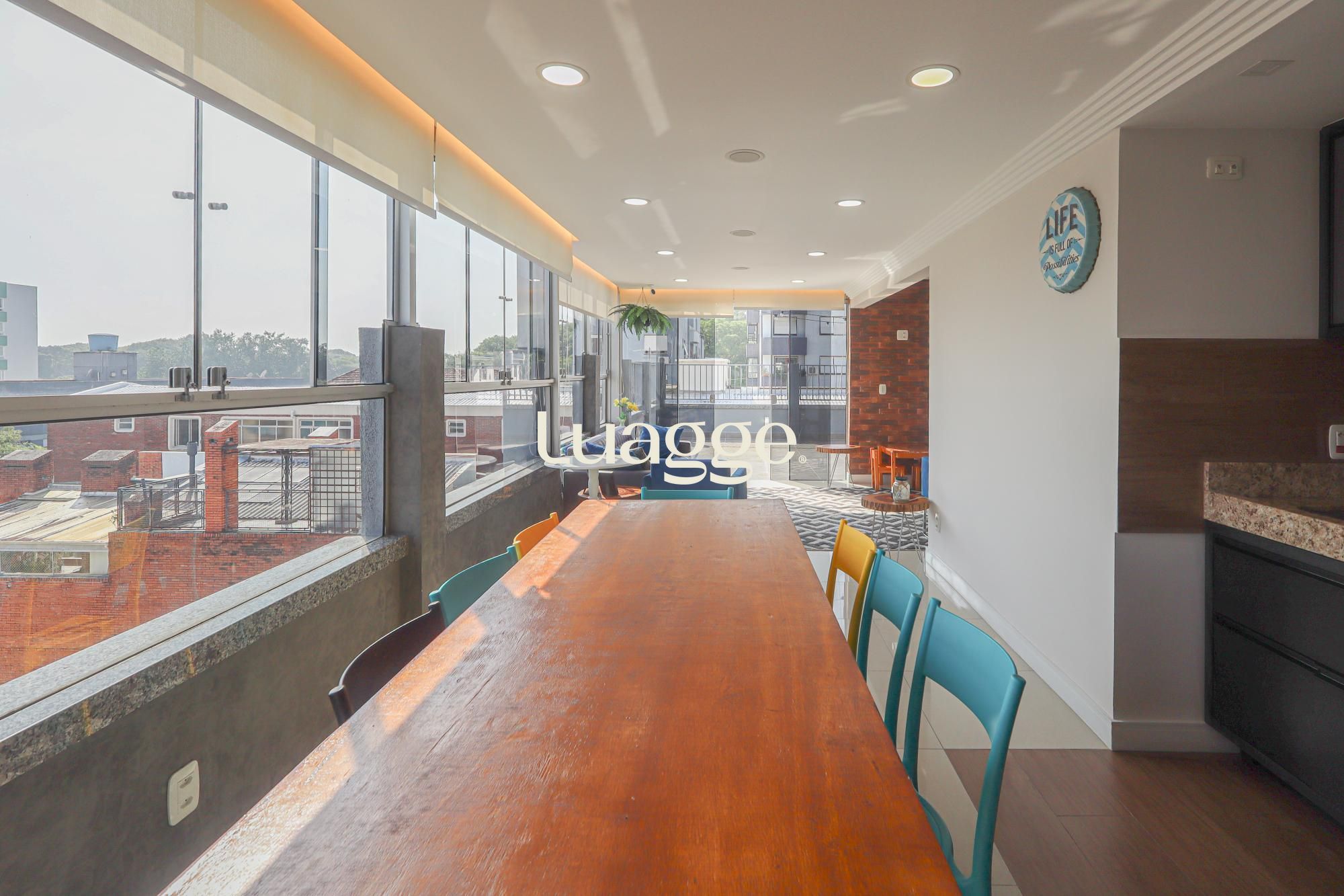 O segundo pavimento conta com área gourmet com churrasqueira, amplas janelas proporcionando muita iluminação e ventilação, espaço para gabinete, banheiro social completo e amplo terraço com linda vista.