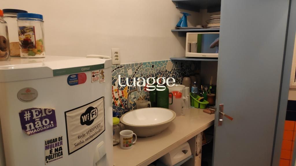 Sala semi mobiliada, três ambientes, 130m² privativos, portaria 24h, excelente prédio da Andradas. Aceita dação de sala menor de até 150mil.