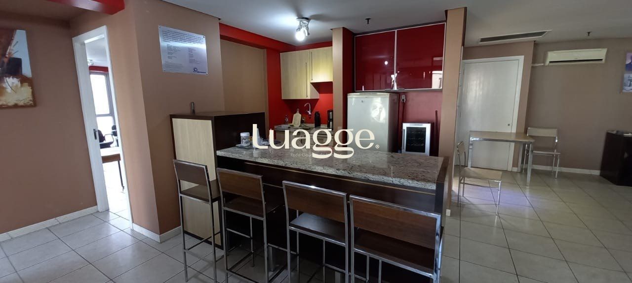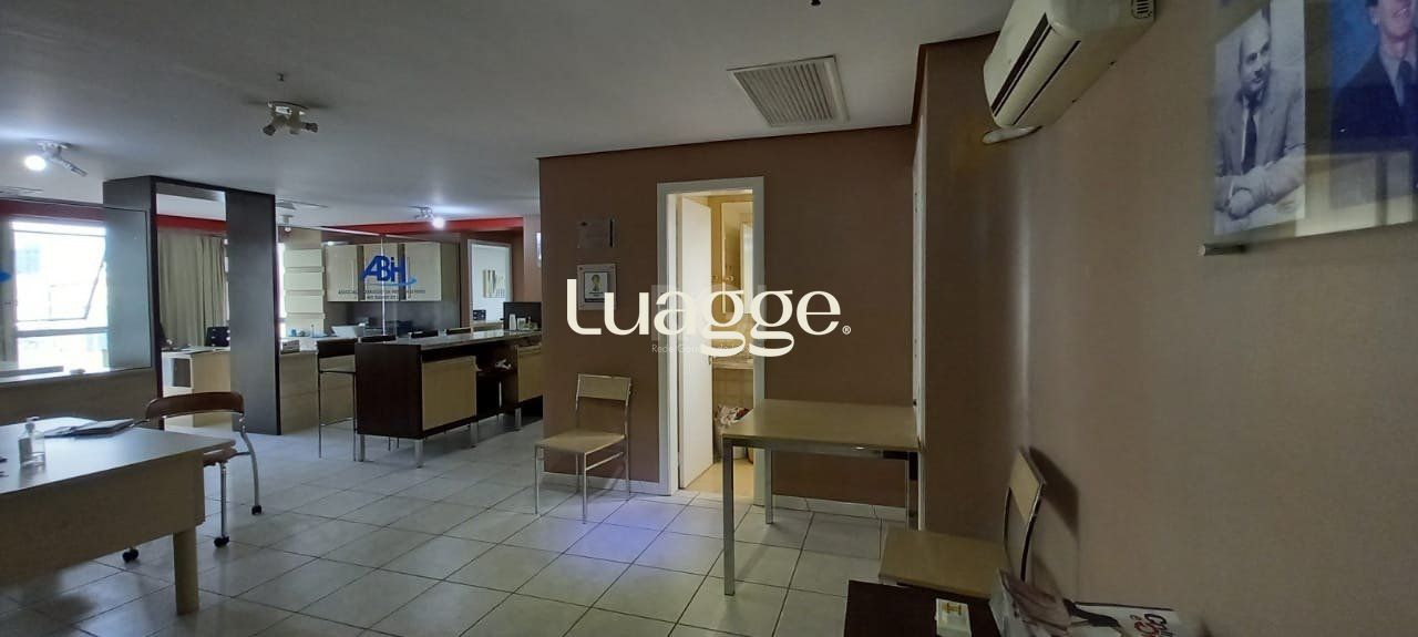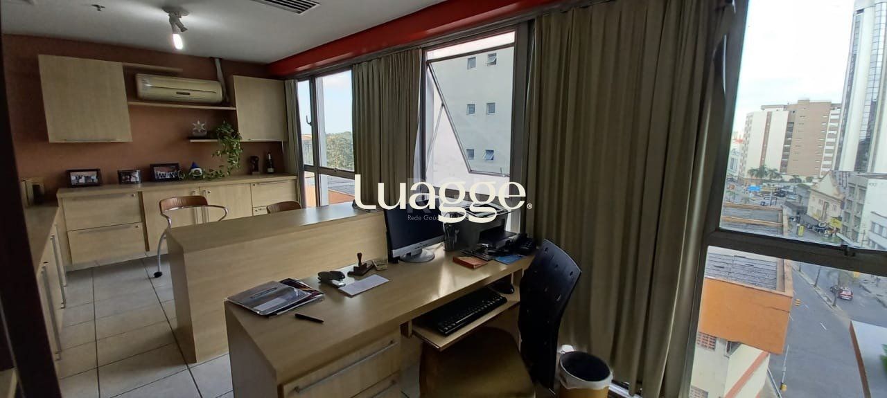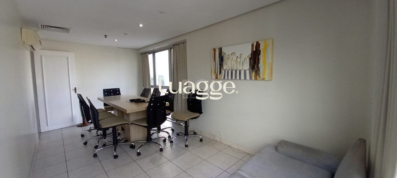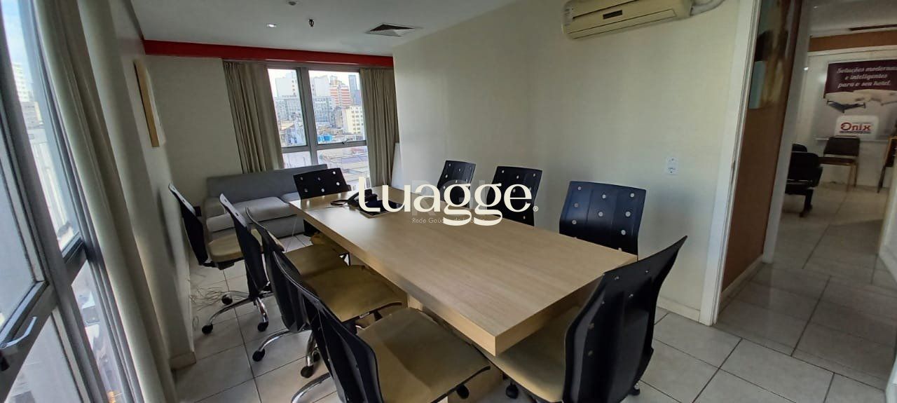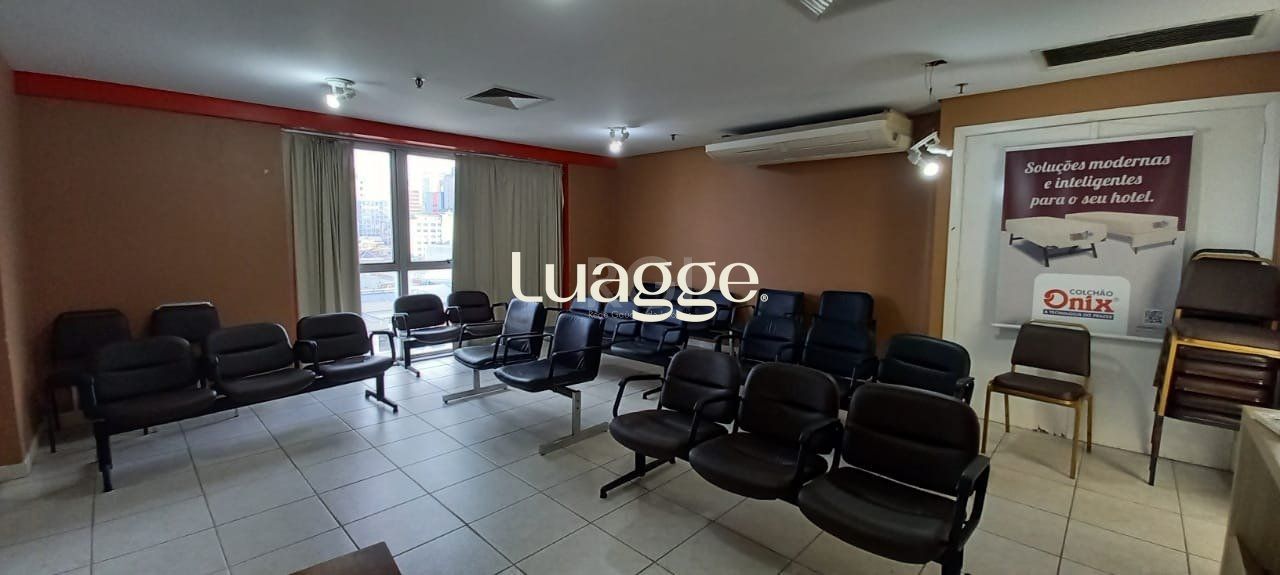 Vende sala com 124,96 m² úteis em andar alto, ótima localização na região central, divisórias, dois banheiros, piso frio. Obs.: sala está totalmente mobiliada e móveis podem ser negociados na venda.