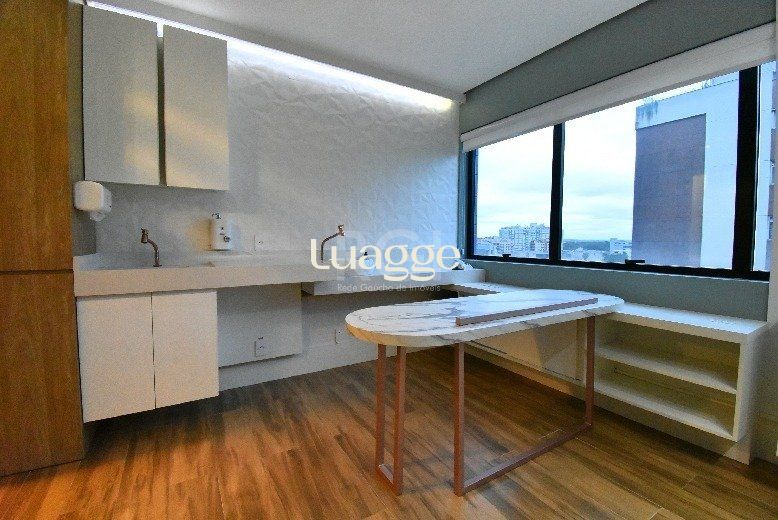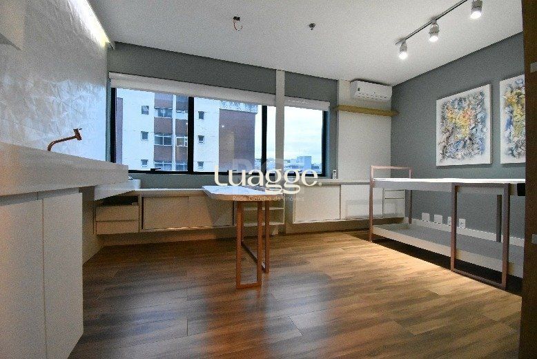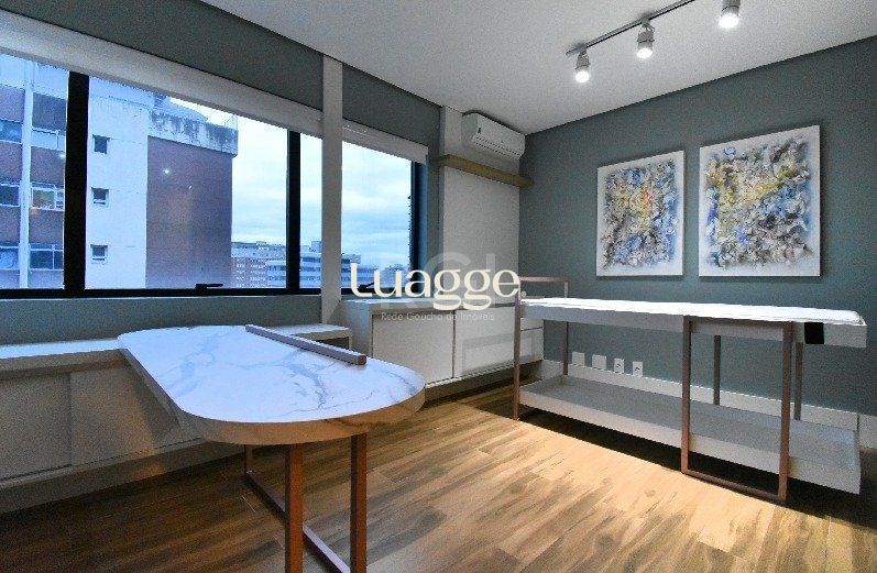SALA COMERCIAL excelente, decorada e mobiliada - com 25,81 m² privativos, lavabo, posição lateral, 7º andar (oitavo pavimento).