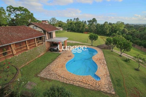 Lindo sítio com área de 6.500m² casa de alvenaria com aproximadamente 500m² de área construída com excelente estrutura, 4 dormitórios, sendo 2 dormitórios com sacada, garagem coberta ´para 3 carros, cozinha com móveis sob medida, sala em 2 ambientes, casa auxiliar em madeira com 2 dormitórios, sala, cozinha, banheiro, área de festas com churrasqueira, banheiro e espaço de apoio a piscina com banheiro que serve como vestiário. Varanda, área externa com piso cerâmico, piscina com equipamento novo, motor , bomba, filtro, patio todo gramado, praticamente todo plano com opção para construção de cancha de esportes, ótima localização , sem risco de alagamentos, não aceita financiamento, documentação em dia dos terrenos, casas sem averbação.