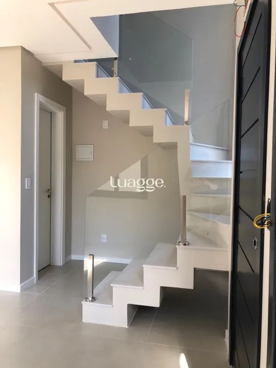 * O sobrado conta com 2 quartos com sacada, 2 banheiros(um embaixo e um em cima), cozinha e sala integradas, escada plissada com ótimo revestimento e pé direito duplo.